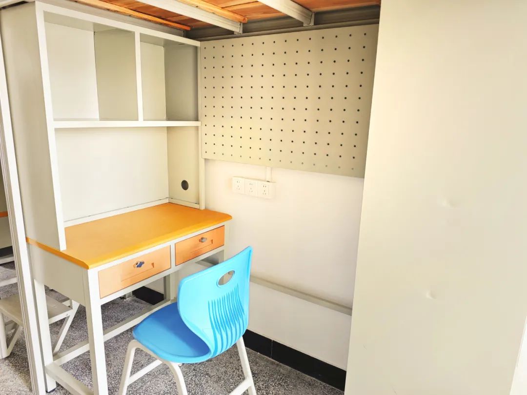 家具设计个性化,洞洞板方便学生吸铁或悬挂个人物品,侧坐位书桌柜组合平衡私人空间与公共空间,双开门衣柜使其拥有更大的储物空间。除此之外,还开始了覆盖全白云山校区学生公寓的水电表更新工程,新水电系统上线后可实现线上充值,届时充值将无需线下排队等候,随充随用。