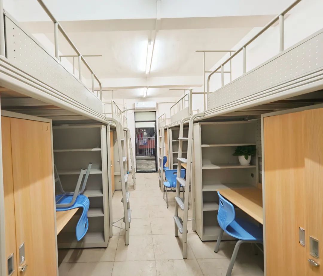 为了给新生提供更舒适的学习生活环境,暑假期间,学校着重对学生宿舍进行全面翻新修缮,对白云山校区宿舍17栋与大学城校区宿舍1栋、13栋的173间宿舍进行翻新,提前交付使用。学生宿舍20栋修缮项目为学校新增了64间宿舍,256个床位。宿舍7栋项目将48间学生宿舍由公共卫生间升级为独立卫生间和阳台,室内布置上床下桌。宿舍4栋项目则将1218个高而不便的高柜调整为触手可及的上床下桌。为尽量减少气味对学生的影响,本次家具材质以冷轧钢为主,表面着色采用静电粉末附着,椅子采用钢架加注塑面板,最大程度上减少使用木材与油漆,保证健康与环保。