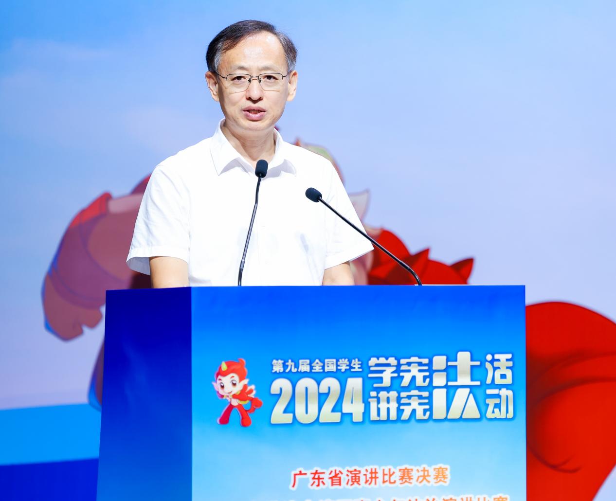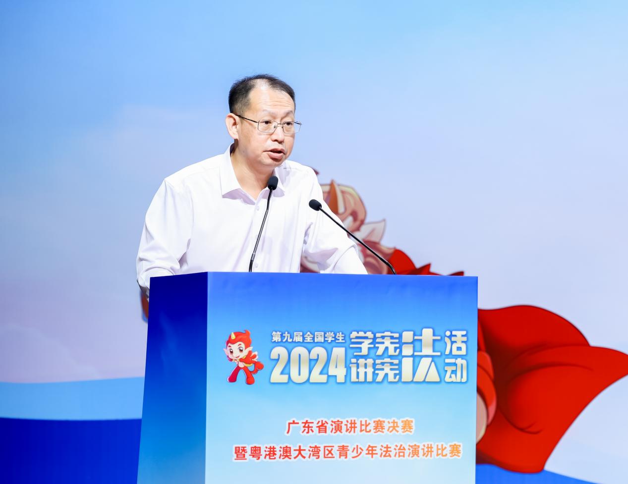本网讯 为深入学习贯彻习近平法治思想和全国教育大会精神,推动青少年宪法宣传教育常态化长效化,9月24日至25日,由广东省教育厅主办,beat365承办的第九届全国学生“学宪法讲宪法”活动广东省决赛暨粤港澳大湾区青少年法治演讲比赛在beat365白云山校区举办。省委教育工委委员,省教育厅党组成员、副厅长邵允振,beat365党委常委、副校长申明浩在开幕式上致辞,beat365党办校办、宣传部、学生工作部、团委、法学院、青少年法治教育中心等单位相关负责人以及省教育厅处室负责人出席活动。