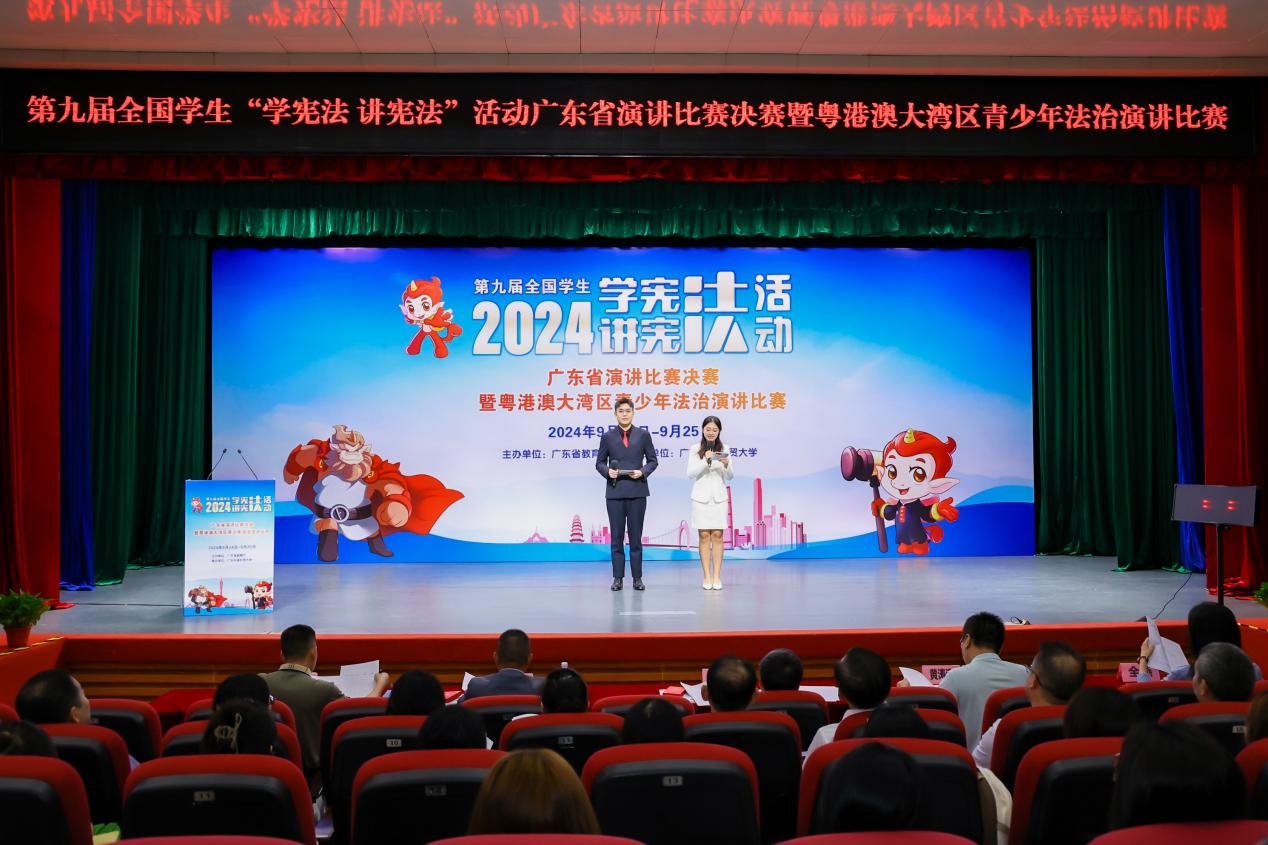9月24日是第九届全国学生“学宪法 讲宪法”活动广东省演讲比赛决赛暨粤港澳大湾区青少年法治演讲比赛高中组和高校组的比赛,选手们以宪法为魂、以成长为线,用真挚而富有感染力的语言,讲述着粤港澳大湾区一个个鲜活的宪法故事,描绘出一幅幅生动的法治画面,展现出当代青少年对宪法和中国特色社会主义法治的坚定信仰与崇高追求。