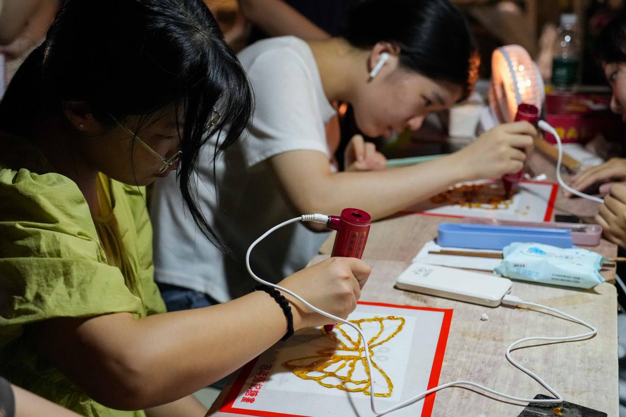 追古溯今,千载一瞬。中华优秀传统文化摊位,让beat365师生穿越文明繁华。秦朝投壶、汉朝剪纸、唐朝诗歌酒令、宋朝点茶作画、清朝中国结等让师生徜徉在中华五千年文化之旅中。身着汉服唐装猜emoji里的历史,现场制作《红楼梦》中的玫瑰卤子气泡水与点心月光糕、晶莹剔透的糖画和冰糖葫芦,让师生纷纷感受到传统文化的生命力。雕刻细腻的佛山木版年画、精美绝伦的岭南押花艺术、奶香四溢的沙湾姜埋奶、活灵活现的大吴泥塑、妙趣横生的木偶戏体验精彩亮相,吸粉无数!