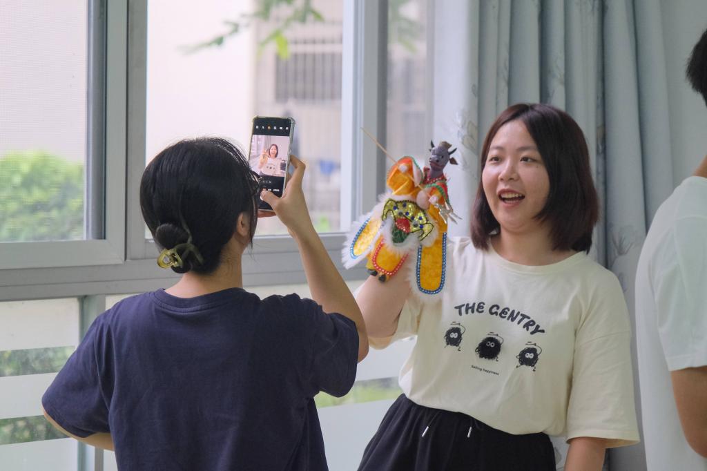 与此同时,一阵阵悠扬婉转的戏腔回荡在空中,那是偶具匠心团队正为同学们倾情演绎经典曲目。教室内,学生们与木偶互动频繁,团队成员幽默风趣的讲解更是让现场充满了欢声笑语。行政管理专业的代同学感慨道,自幼喜爱木偶戏的她在此次活动中找到了归属感。“当我尝试自己操纵木偶时,我的手指就好像在互相打架。”通过亲身体验,她深刻领悟到了这一艺术的精妙与不易。在活动现场,众多同学对本次非遗体验活动反响热烈,并希望学校未来能继续举办更多类似活动,为他们提供更多亲身感受传统文化魅力的机会。