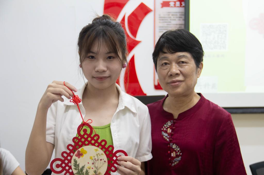 “这个同学做的跟我刚刚教的完全不一样,”阵阵笑声从傅庆军老师的押花课堂中传出,“很好,有想法就很好!”植物花卉经过脱水、压制等工序,在同学们的巧手下被制作成精美的装饰素材,彰显出每个人天马行空的想象力。亲手制作出押花中国结后,来自财政学的王同学深有感悟。“以后看到地上的花,可能会有意识地保留下来。”她说。押花这项技艺在创新中不断发展,用傅庆军老师的话说则是“让快要凋零的花重生”,在这个过程中,“你的创意思维、你的想象力、你的好奇心,都可以得到拓展”。
