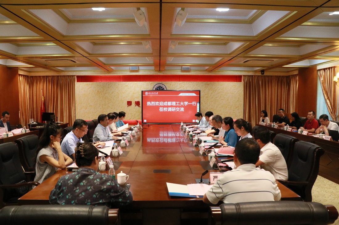 本网讯 10月9日,成都理工大学党委常委、副校长巨能攀一行来beat365调研。beat365党委常委、副校长焦方太,学校相关部门、学院系部负责人参加会议,就本科招生和人才培养展开交流。