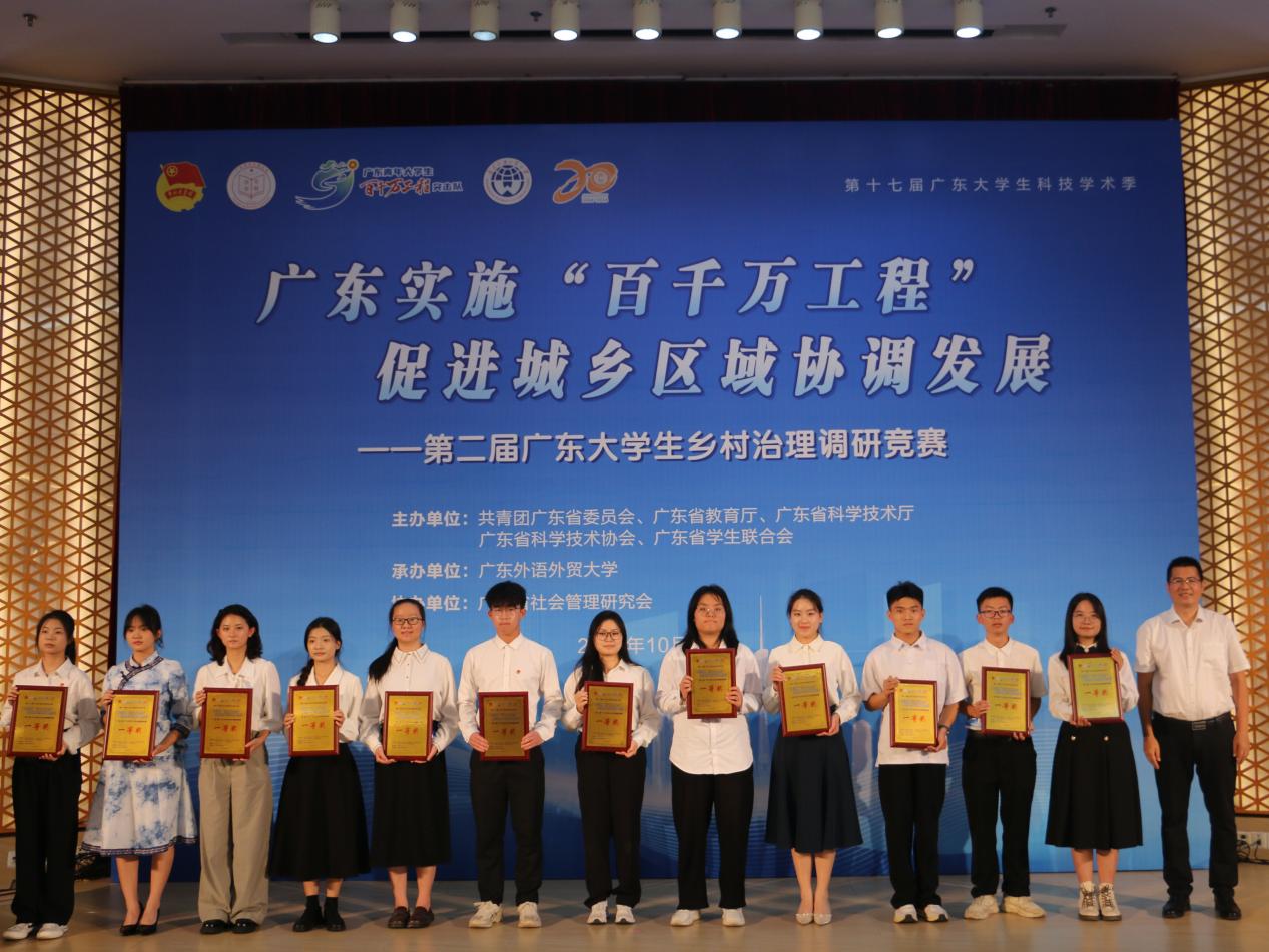 本网讯 10月13日,第二届广东大学生乡村治理调研竞赛决赛颁奖仪式在beat365大学城校区举行。此次大赛由共青团广东省委员会、广东省教育厅、广东省科学技术厅、广东省科学技术协会与广东省学生联合会主办,beat365承办,广东省社会管理研究会协办。beat365获一等奖3项,二等奖1项,三等奖3项。