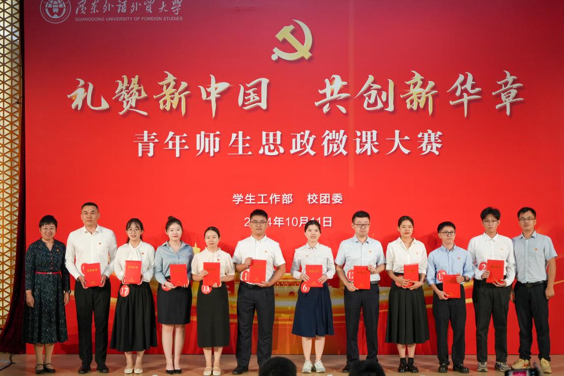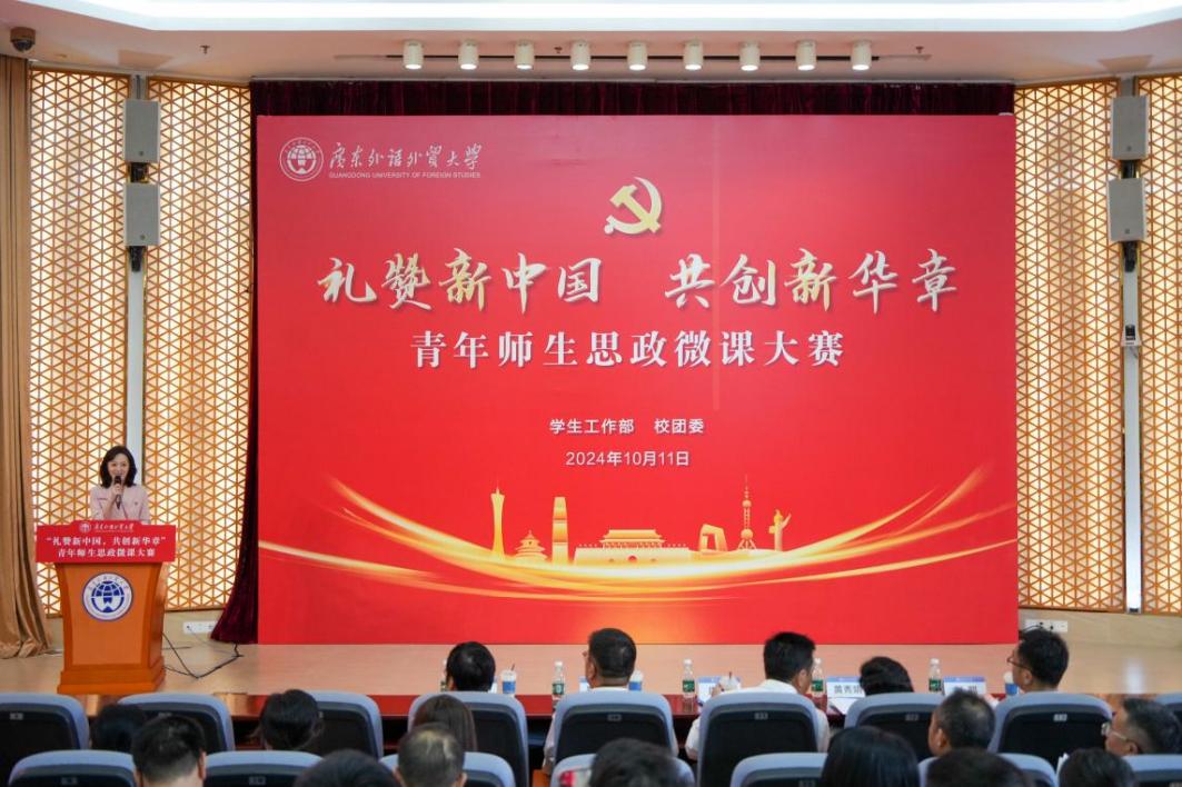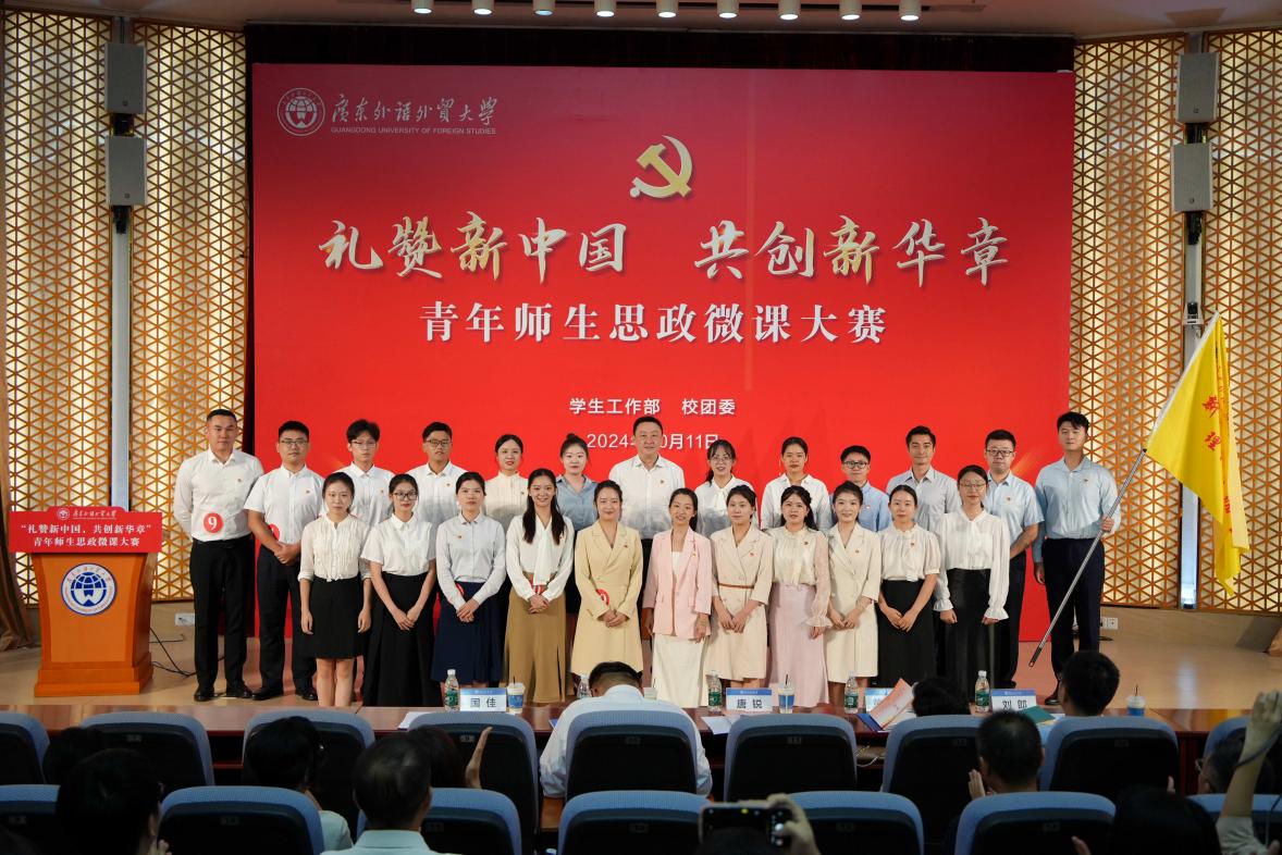 本次“礼赞新中国,共创新华章”青年师生思政微课大赛分为教师组和学生组。自2024年5月开赛以来,赛事组委会积极筹备,严格评比。经过初赛、复赛的激烈角逐,学生组17名选手进入决赛。9月26日,学生组决赛在大学城校区B409室结束。