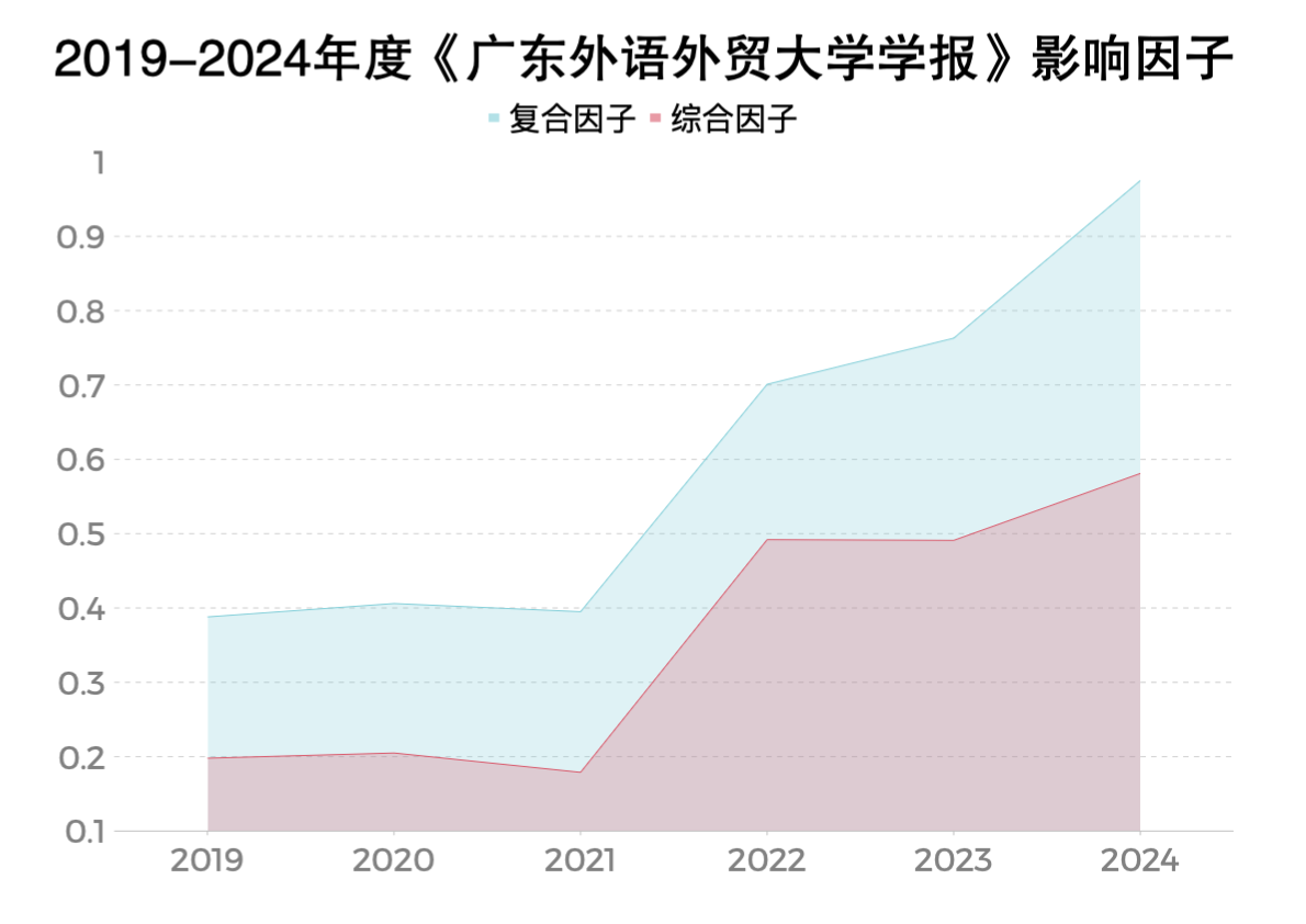 本网讯 根据最新发布的《中国学术期刊影响因子年报(人文社会科学·2024)》,《beat365英国官网学报》各项关键指标均实现显著提升。2024年复合影响因子达到0.975,五年内实现251%的增长;综合影响因子增至0.581,增幅达193%。在影响力指数(CI)的学科排名中,学报较2023年上升了11位,跻身全国外国文学专业期刊前三名。
