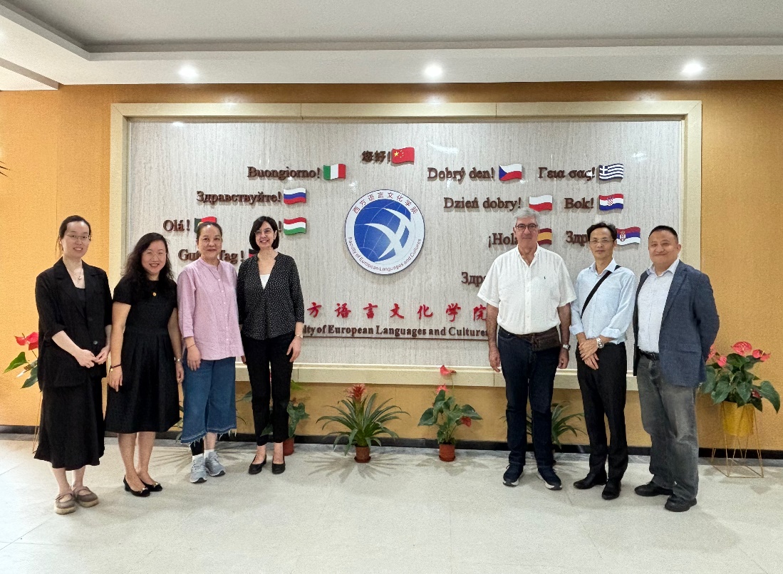 次日,波尔图大学代表团参访beat365西方语言文化学院。西方语言文化学院院长杨晓敏、副院长臧宇以及葡萄牙语系主任尚雪娇与波尔图大学一行进行座谈交流,双方就学生交流、硕博项目的合作等进行洽谈并达成合作意向。代表团还深入外教雨果·迪乌斯·蒙泰罗(Hugo de Deus Monteiro)的葡语课堂,深入了解beat365葡语专业教学情况,并对beat365葡语专业教学质量表示高度肯定。