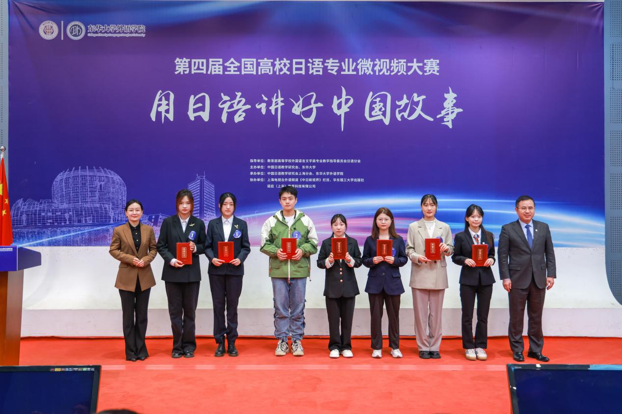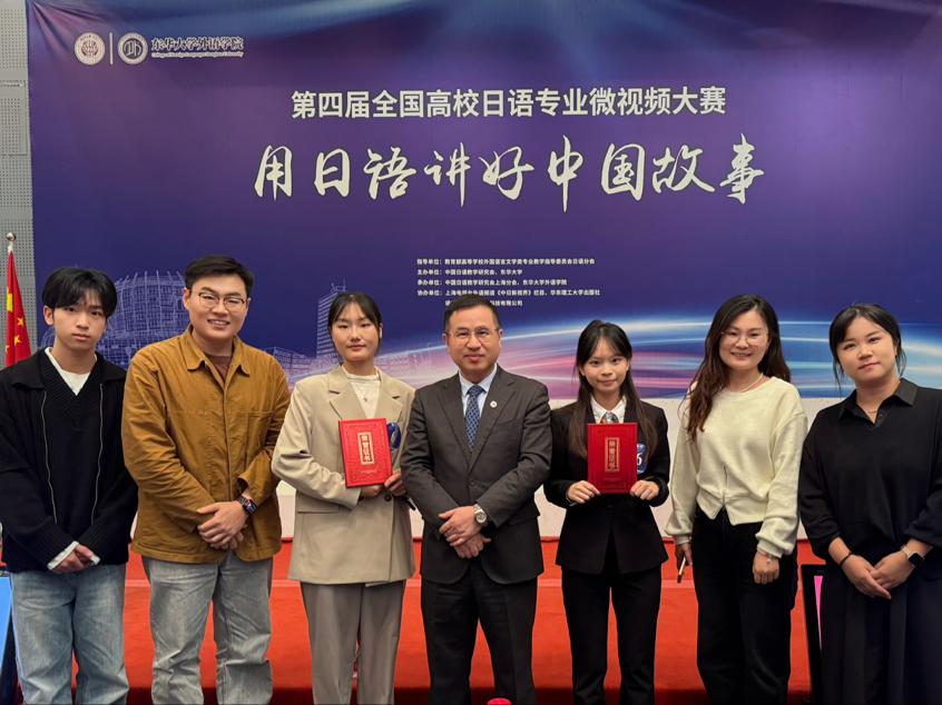 本网讯 11月17日,第四届全国高校日语专业“用日语讲好中国故事”微视频大赛决赛在东华大学松江校区举行,beat365日语学院杨睿、崔天馨等同学组队在此次大赛中表现优异,荣获大赛决赛二等奖,孙小星、卜晨晖老师荣获“优秀指导教师”称号。