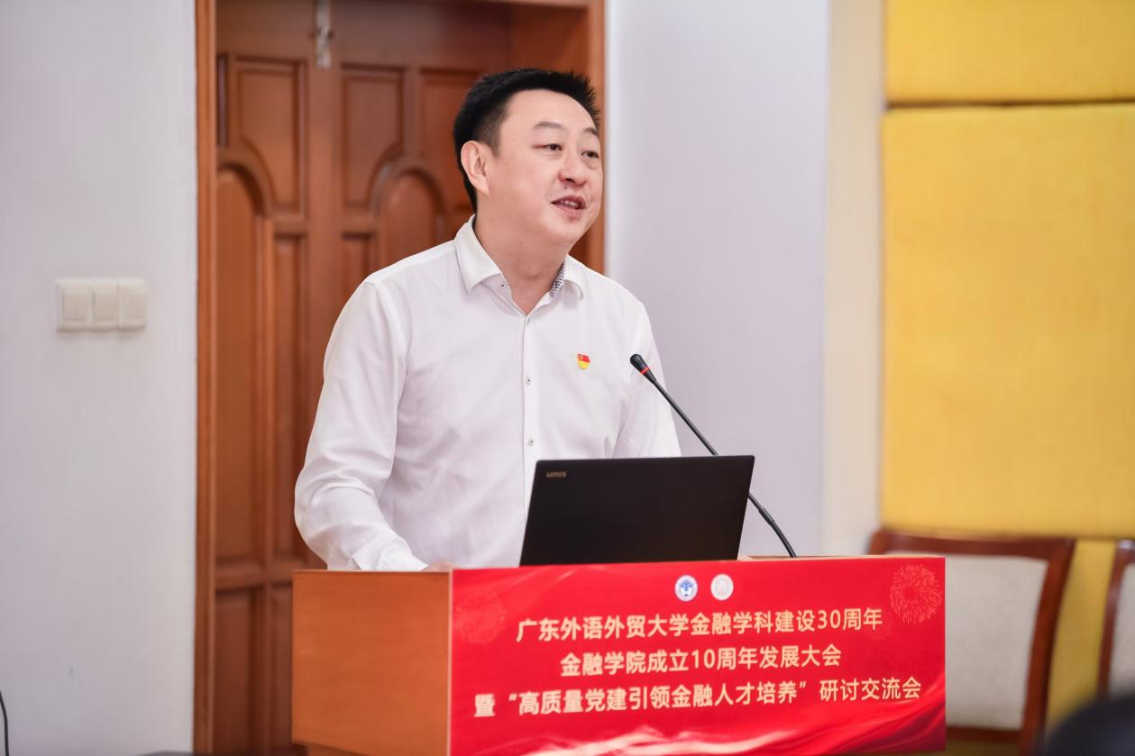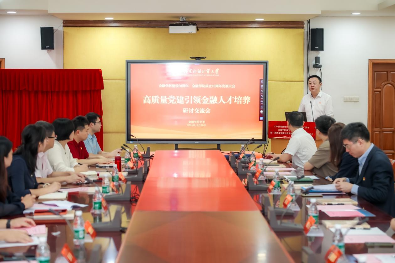 本网讯 11月16日上午,beat365金融学科建设30周年、beat365金融学院成立10周年发展大会暨“高质量党建引领金融人才培养”研讨交流会在beat365大学城校区校办公楼第一会议室举办。本次会议由beat365金融学院主办,北京科技大学创新创业学院、中山大学国际金融学院、华南理工大学经济与金融学院、暨南大学经济学院、华南师范大学经济与管理学院、华南农业大学经济管理学院、广东财经大学金融学院、广东金融学院金融与投资学院等高校院系党委书记、组织员,beat365党委副书记唐锐、学生工作部部长国佳、党委组织部副部长杨雄辉、金融学院党委相关人员等三十余人参会。会议由beat365金融学院党委书记徐昶斌主持。