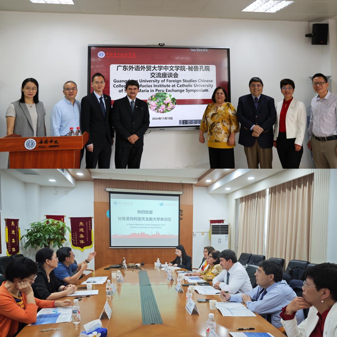 本网讯 11月18日,秘鲁圣玛利亚天主教大学副校长凯撒·卡塞雷斯·萨拉特(Cesar Cáceres Zarate)、孔子学院外方院长安吉莉卡·瓦尔迪薇娅(Angelica Valdivia)等一行来访beat365,beat365副校长焦方太在白云山校区贵宾厅会见了来宾。双方就国际中文教育、本科专业教学交流与合作、人才培养以及孔院建设等事宜进行了深入探讨。