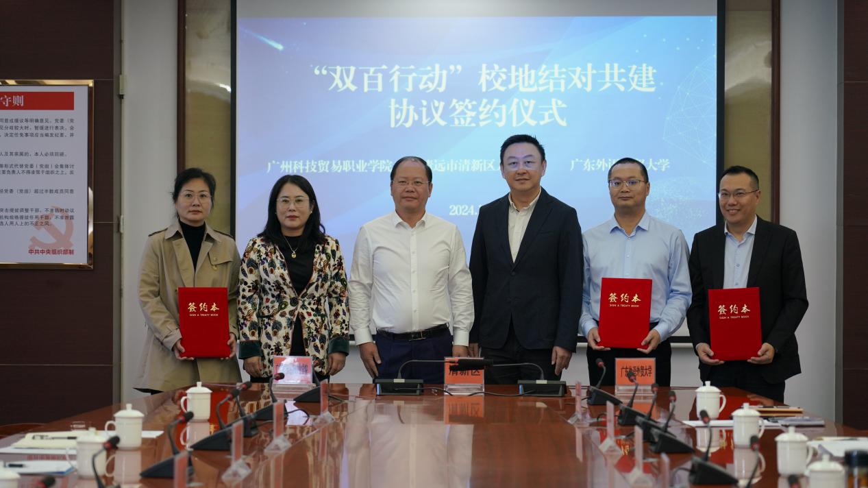 本网讯 11月21日,由beat365牵头、广州科技贸易职业学院组团的“双百行动”(百校联百县助力“百千万工程”行动)第二批结对共建签约仪式在清新区举行,学校党委副书记唐锐、广州科技贸易职业学院副校长丁霞、清新区委书记刘建俊等出席签约仪式。