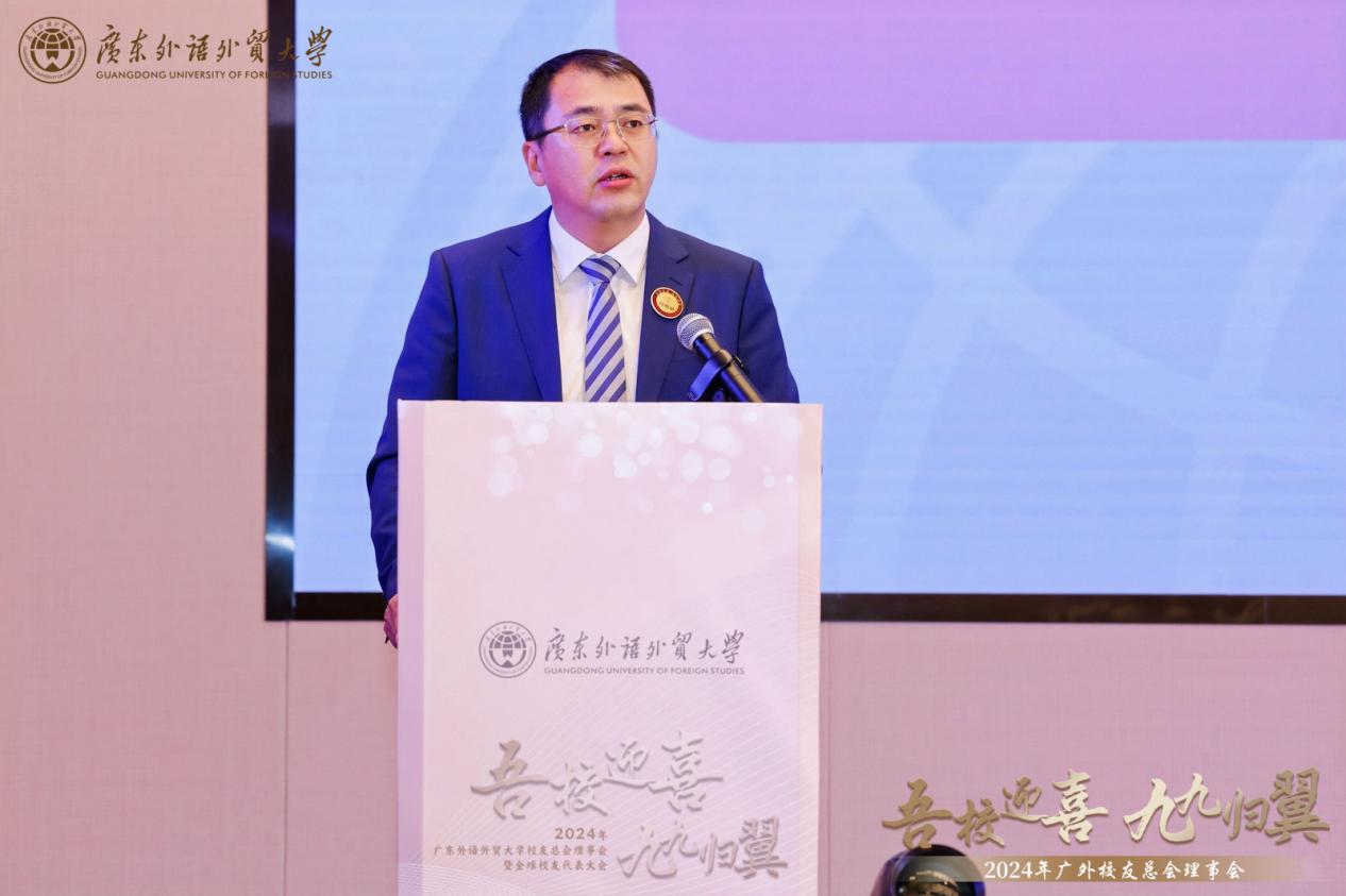 在校友总会理事会致辞中,校党委副书记、校长闫相斌教授代表学校和校友总会,向与会的各位校友代表、嘉宾表示最热烈的欢迎,并向远在世界各地的校友们致以诚挚的问候和衷心的祝福。随后,他报告了学校近期在强化发展战略顶层设计、优化学科布局和交叉融合、改革创新人才培养模式、完善科研创新模式、优化提升师资队伍结构质量、优化提升国际合作布局和水平、优化内部治理结构等方面的工作和成绩。闫相斌指出,学校如今取得的成绩,是全体师生员工团结奋斗以及各位校友大力支持回馈的共同结果,校友们的每一份付出都如同涓涓细流,汇聚成推动母校高质量发展的磅礴力量。他表示,过去一年,校友总会牢牢把握“凝心聚力、服务校友”的宗旨,强化校友数据库建设,深化校企合作,全面优化校友工作体系,持续增强校友间、校友与母校的情感纽带,切实促进了校友发展与母校繁荣。最后,他邀请所有校友一道,在新时代、新征程上展现新作为,与母校携手并进,共创母校与校友同频共振、双向奔赴的美好未来。