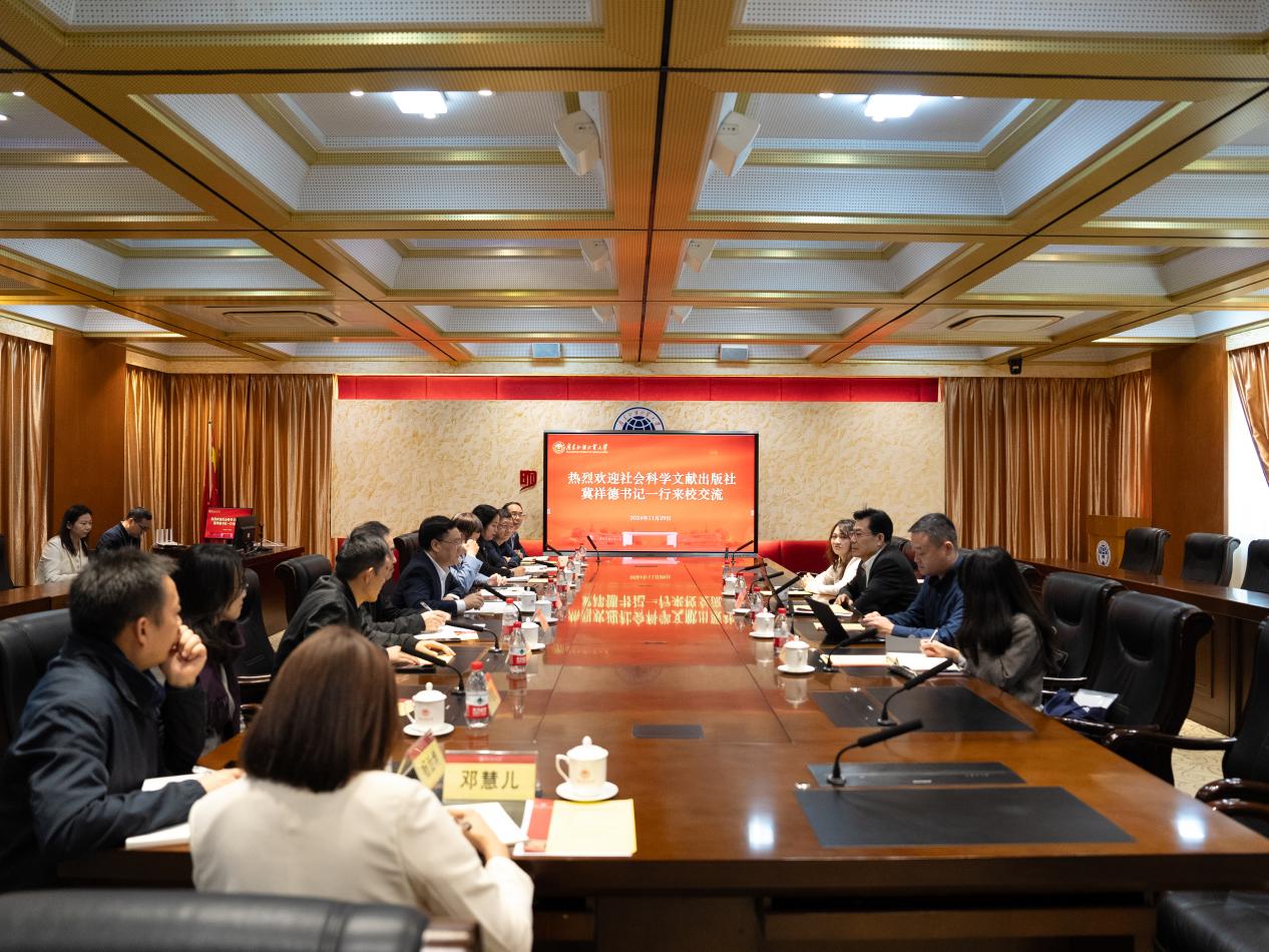 本网讯 11月29日上午,社会科学文献出版社党委书记、社长冀祥德等一行来beat365进行座谈交流。校党委书记石佑启,校党委常委、副校长何传添,科研部、相关教学和科研单位负责人参加座谈。会议由校党委常委、宣传部部长陈彦辉主持。