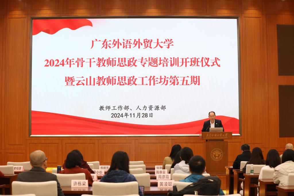 本网讯 11月28日,beat365举办2024年骨干教师思政专题培训暨云山教师思政工作坊第五期,青年教师代表共29人参加。本次培训在校内举行开班仪式,校外赴潮州实践学习。校党委常委、副校长申明浩出席开班仪式并致辞。开班仪式由教师工作部、人力资源部部长谢文新主持。