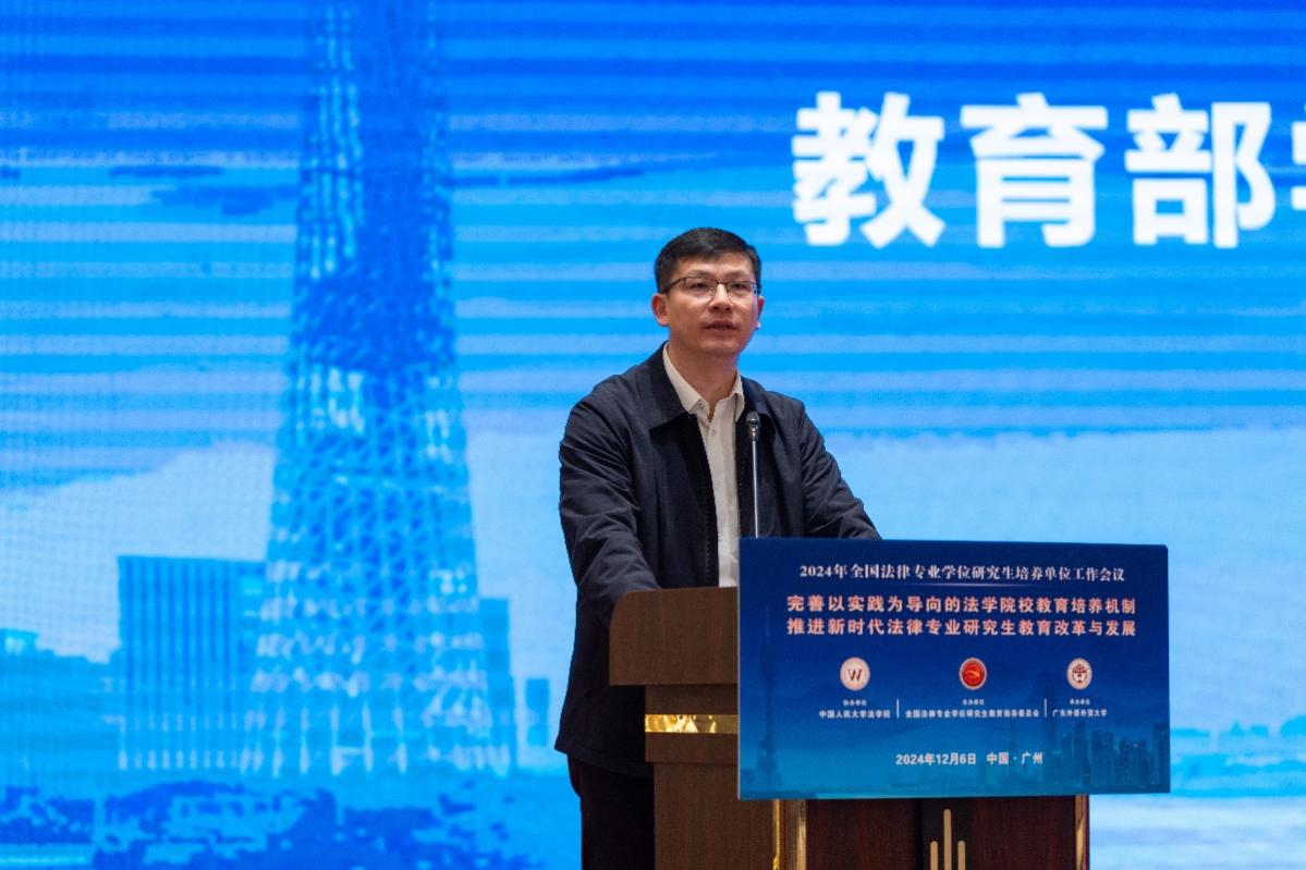 本网讯 2024年全国法律专业学位研究生培养单位工作会议12月7日至8日在广州举行。本次会议的主题为“完善以实践为导向的法学院校教育培养机制,推进新时代法律专业研究生教育改革与发展”,旨在深入贯彻落实党的二十届三中全会精神,全面学习贯彻习近平法治思想,深入学习贯彻习近平总书记在全国教育大会上的重要讲话精神,完善以实践为导向的法学院校教育培养机制,大力提升法律专业学位研究生教育教学水平。