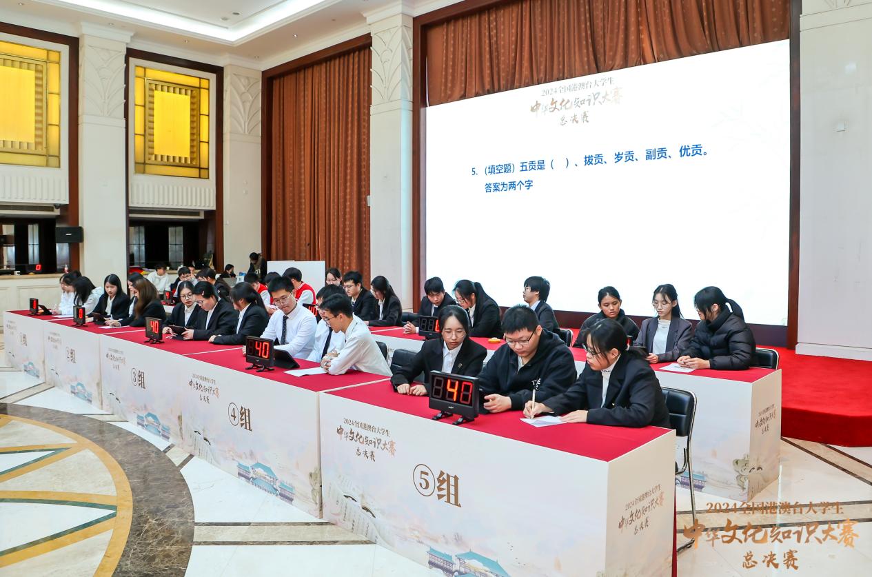 全国总决赛包括必答题和抢答题两部分,分为“先声夺人”“抢滩登陆”“险中求胜”三个环节。各环节中的题目涵盖了中华文化的多个领域,从历史文化、文学艺术和传统习俗等多方面考察参赛学生的知识底蕴、文化素养和应变能力。