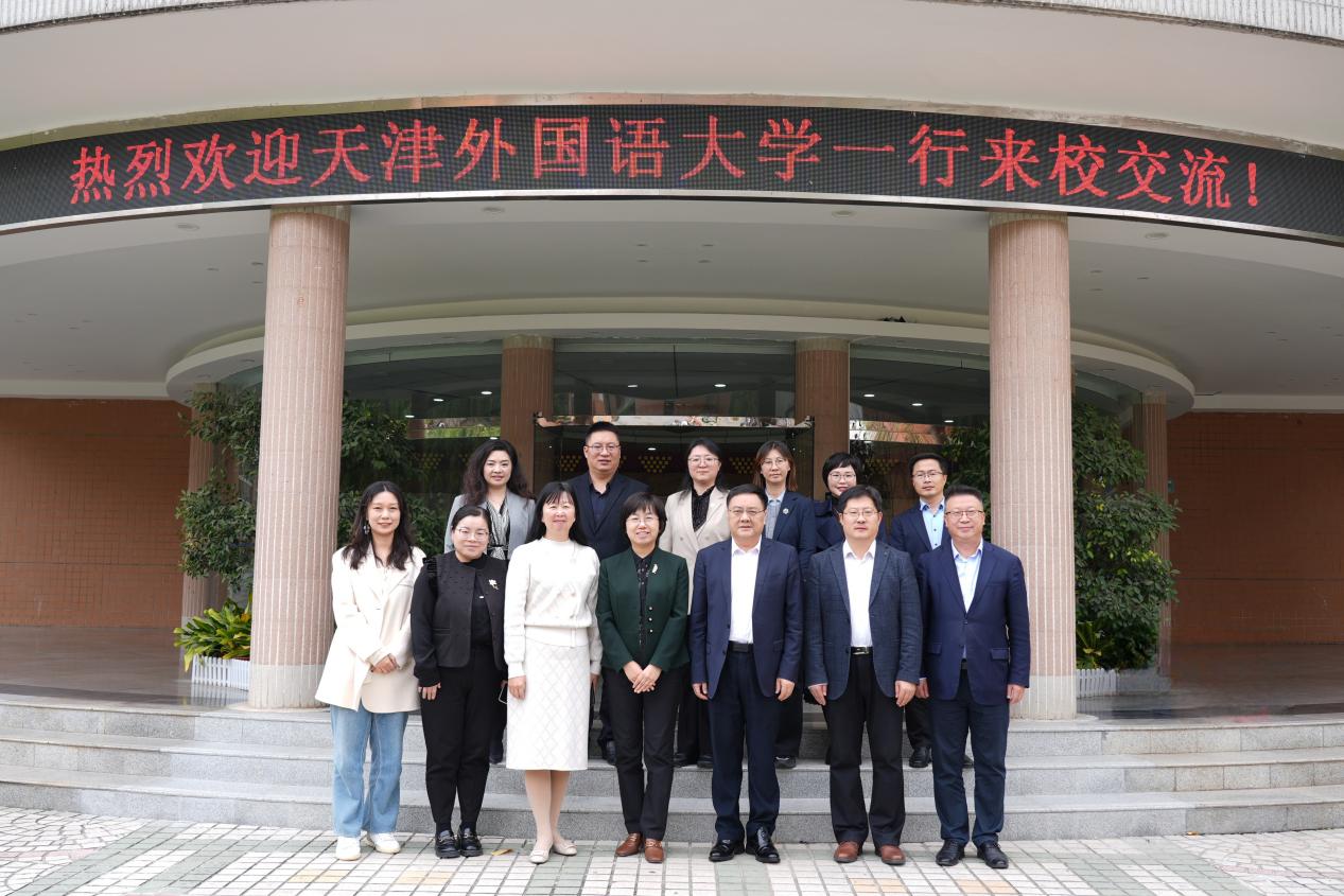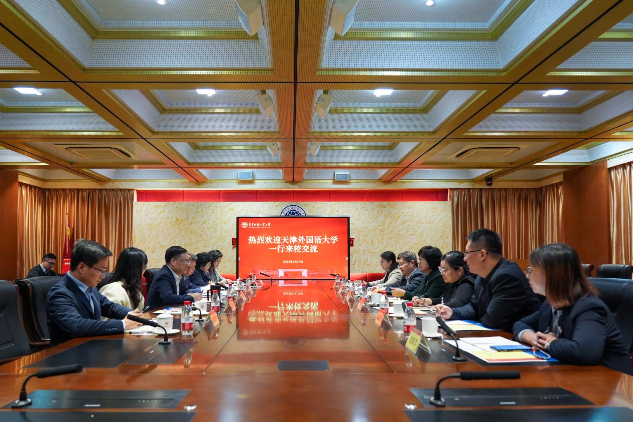 本网讯 12月9日,天津外国语大学党委书记周红蕾一行来访beat365。beat365党委书记石佑启、副书记葛小月出席交流活动。双方就外语学科合作发展、推进教育教学改革等方面开展交流。
