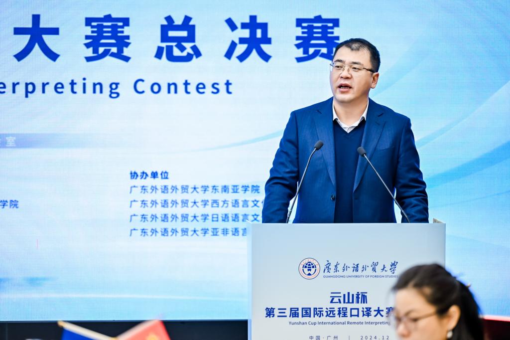 本网讯 12月15日,第三届“云山杯”国际远程口译大赛总决赛落下帷幕。本届大赛总决赛以“文明互鉴·广东城市印记”为主题,邀请21个广东城市代表作主题宣介。决赛汇聚了来自国内外高校的218名选手,以高水平的交替传译和同声传译技能,用16种外语向世界讲述中国故事、广东故事,进一步推动了中外文化的交流与民心的相通。