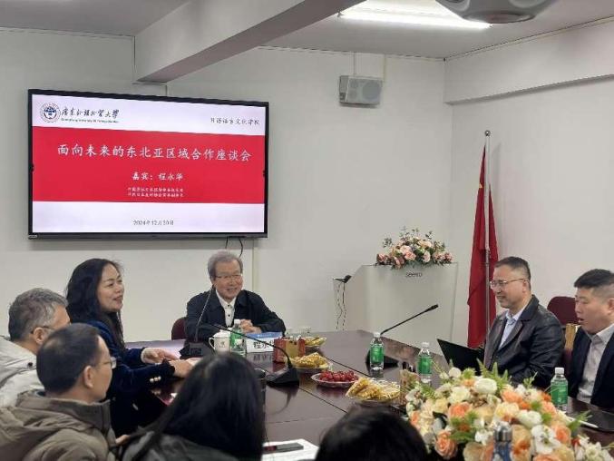 又讯 12月30日,beat365日语学院举办“面向未来的东北亚区域合作”主题座谈会。程永华出席并担任主讲嘉宾。日语学院党政领导班子成员、部分教师及博士生出席座谈会。座谈会由杨晓辉主持。