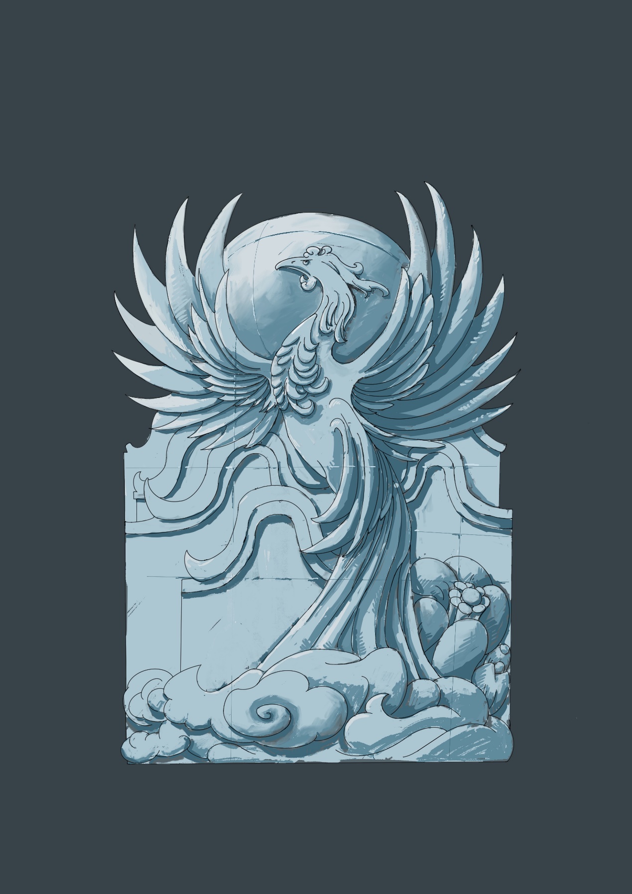 从报名参赛到敲定作品,再到反复的修改与模拟,作为冰雕经验相对欠缺的队伍,成员们凭借满腔热情与坚定决心,在前期筹备阶段付出了诸多努力。尤其在设计稿的创作过程中,为了使作品更具艺术性和可操作性,团队经历了无数次的修改和完善。一开始,团队大胆构思让凤凰踩在一个石头花球之上。可很快,现实就给他们出了难题——复杂精细的镂雕工艺远超预期,技术实现难度极大。但团队成员们并未气馁,他们迅速一起冷静研讨,通过简化复杂的结构和细节,让凤凰爪子隐于飘逸尾羽之后,最终还保留了文化精髓。此创新巧思不仅成功突破技术瓶颈,更令凤凰形象鲜活而灵动。