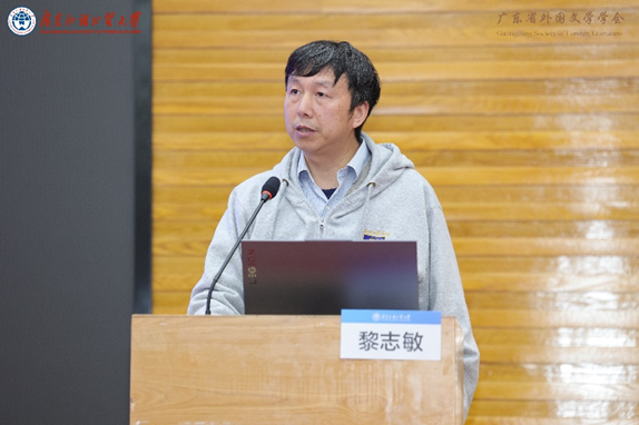 黎志敏介绍了广东省外国文学学会的基本情况及本次大会的主要议程。他强调,学会始终致力于为全省外国文学界同仁搭建高水平的学术交流平台,并以“搭建学术平台,促进学术进步”为宗旨,积极为会员提供优质服务,创造丰富的学术交流与发展机会。
