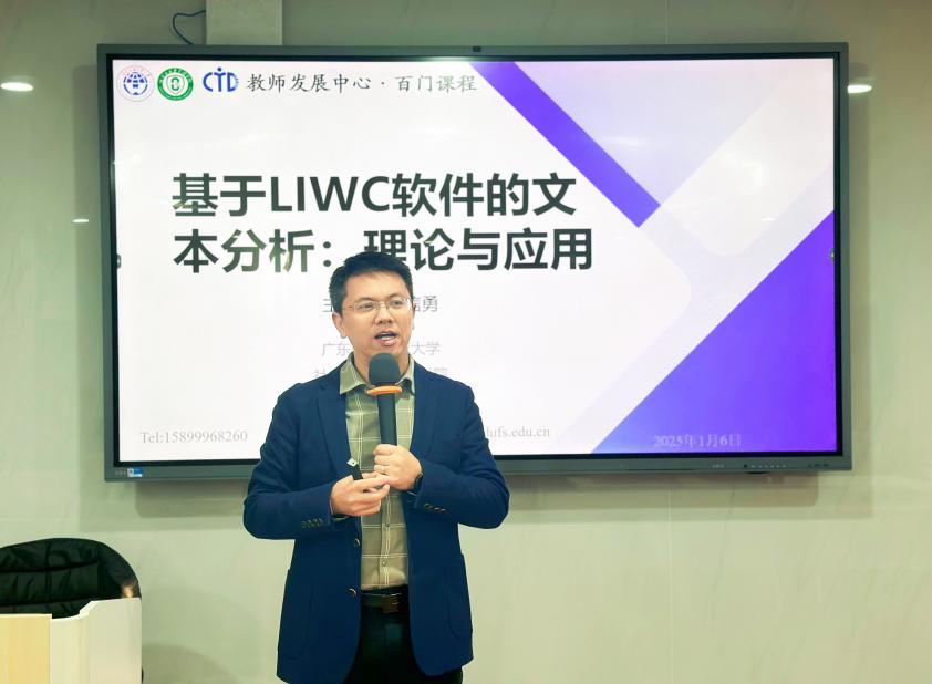 本网讯1月6日上午,人力资源部(教师发展中心)开设的“百门教师发展培训精品课程(百门课程)”——《基于LIWC软件的文本分析:理论与应用》在大学城校区学术交流中心MPA中心第三会议室开讲。主讲教师为beat365社会与公共管理学院副院长、教授张信勇。
