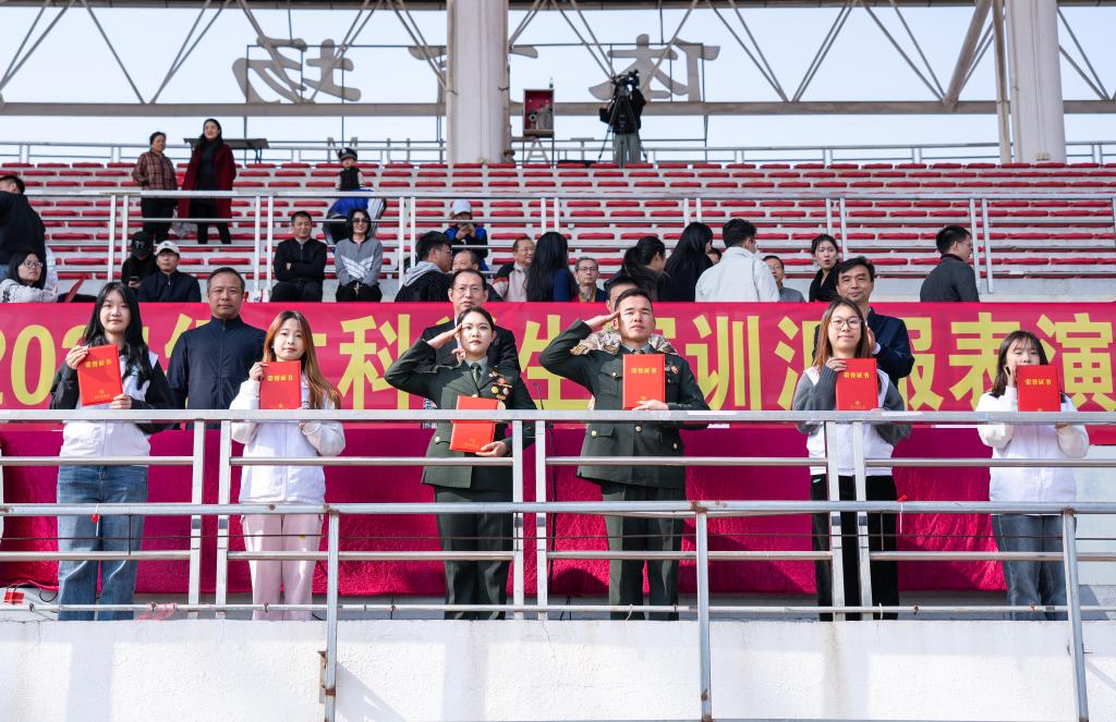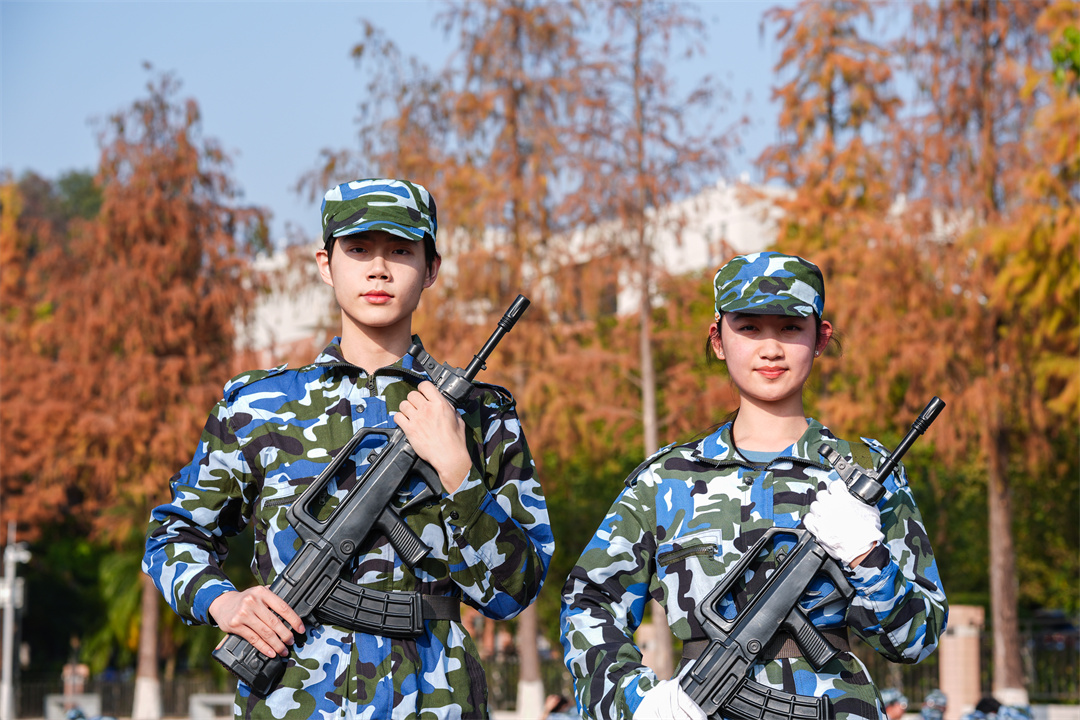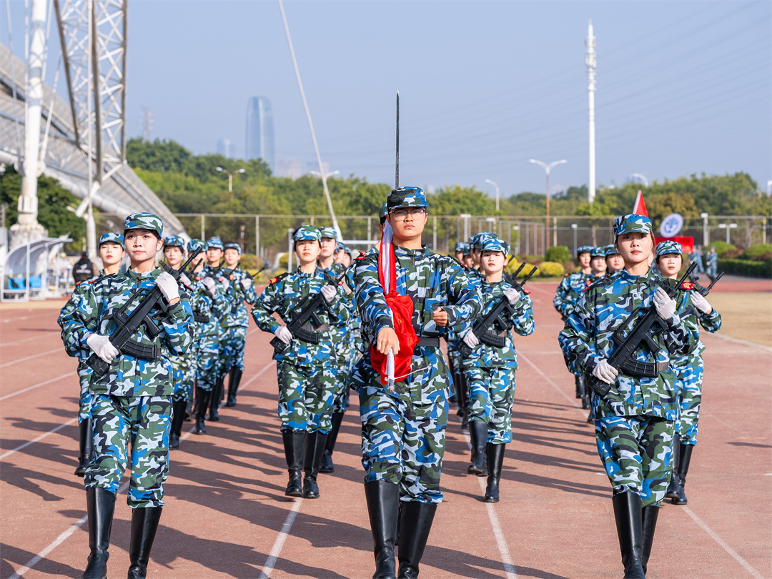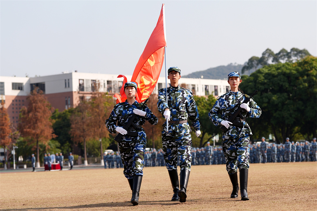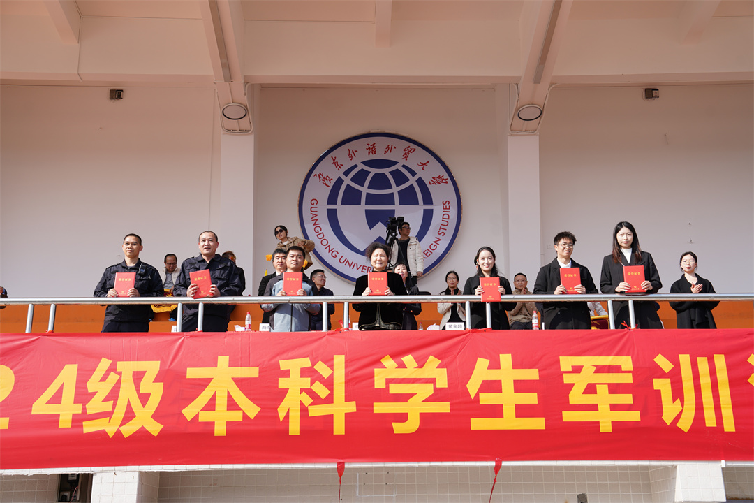 本网讯 身着迷彩心坚毅,一程军旅显意气。1月9日上午,2024级本科学生军训汇报表演暨总结表彰大会举行。党委副书记葛小月、副校长申明浩分别在白云山校区、大学城校区检阅军训队伍。承训单位领导,学校军训领导小组成员,相关职能部门负责人、各学院负责人,教师代表等出席军训汇演。
