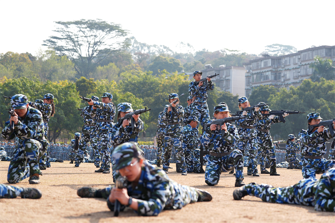 白云山校区学生代表杨滨蕊提到,军训不仅是一次生动的国防教育课程,帮助大家掌握基本军事技能和国防知识,更通过教官的言传身教,深刻感受到了军人的责任和国防的重要性。大学城校区学生代表邱尔康回顾14天军训,谈到训练中的挥汗如雨、同学间的相互鼓励、教官的言传身教,让新兵们学会了坚持与忍耐、责任与担当。beat365学子将带着军训精神直面未来挑战,向着梦想披荆斩棘,奋勇向前。