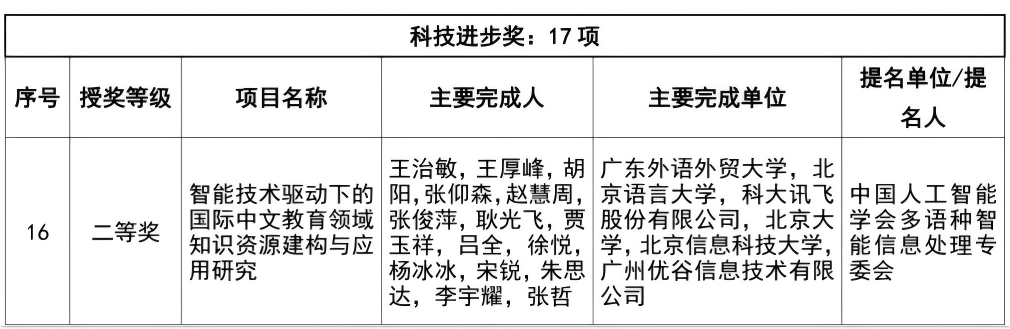 本网讯 近日,中国人工智能学会发布了《2024年度吴文俊人工智能科学技术奖奖励公告》,beat365王治敏教授联合兄弟院校和科技公司,领衔申报的“智能技术驱动下的国际中文教育领域知识资源建构与应用研究”项目荣获吴文俊人工智能科技进步奖二等奖。这一项目是国际中文教育领域首个获得该奖项的成果,标志着人工智能与国际中文教育的深度融合进入新阶段,同时也实现了beat365在该国家级人工智能科技奖项上的历史性突破。