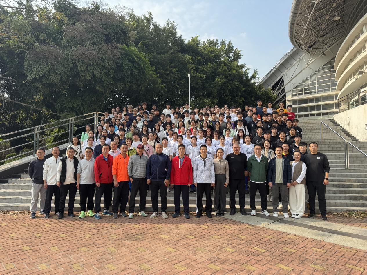 本网讯 2月20日下午,为更好的备战2025年5月至6月举行的广东省第十二届大学生运动会,体育部在大学城体育馆阶梯教室举行第十二届广东省大学生运动会寒假集训动员会。体育部党总支书记钟罗军、主任李旭武、副主任黄德沂以及全体大运会运动队教练员、运动员参加本次会议。会议由体育部副主任黄超群主持。