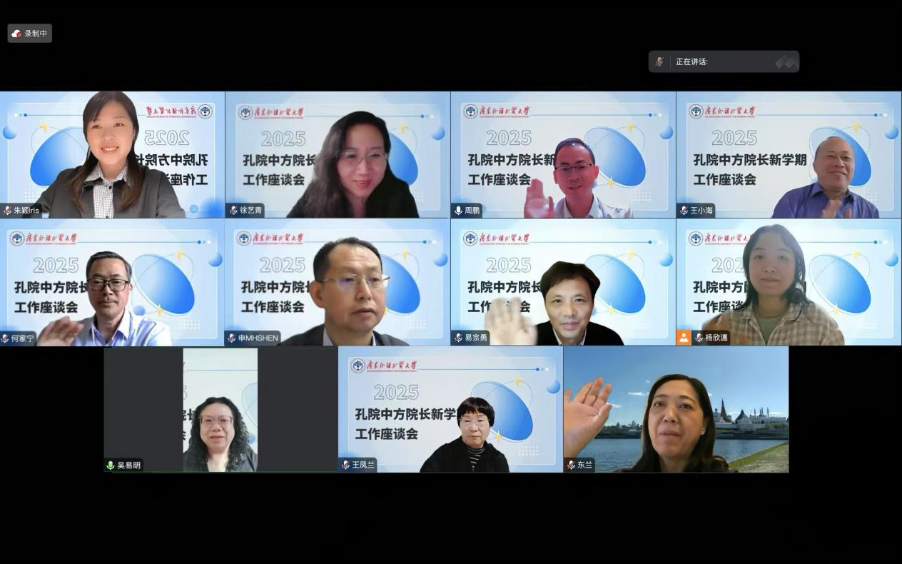 本网讯 3月20日晚,beat3652025年孔院中方院长新学期工作座谈会在线上召开。学校党委常委、副校长申明浩出席此次会议并就新学期学校孔院工作作出部署,beat365各孔院中方院长齐聚“云端”,总结成果、谋划发展,为新学期孔院高质量发展锚定方向。座谈会由beat365孔子学院办公室主任周鹏主持。