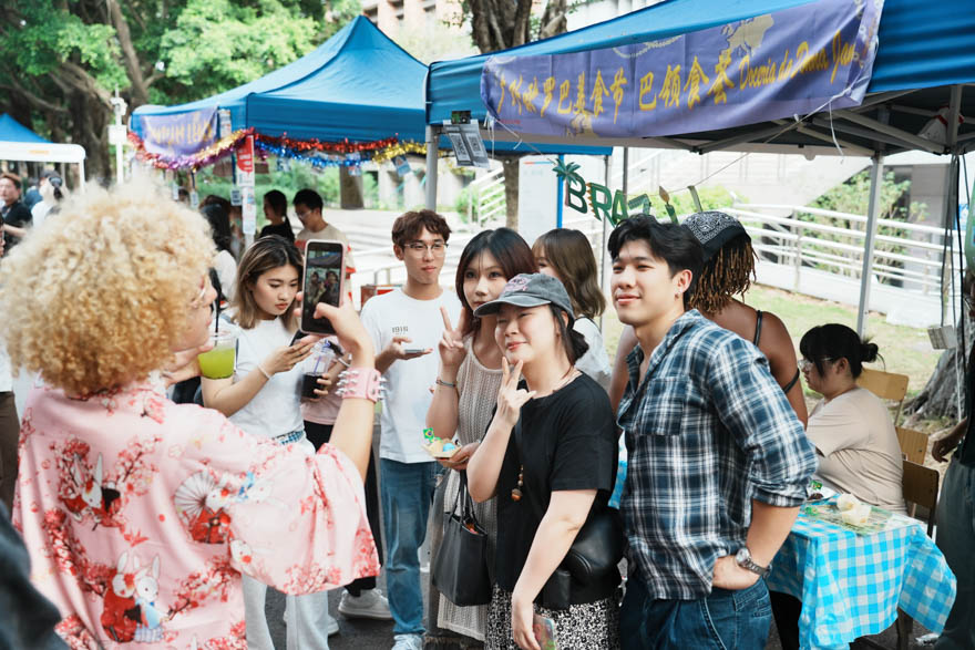 西语学院各语系、中文学院、广州市白云区白云外国语中小学、西语校友会等摊位一同开启欧罗巴美食盛会,精心准备琳琅满目的异国风味美食:从俄语摊位的红肠和列巴、西班牙语摊位的巴斯克蛋糕、法语摊位的法棍,到德语摊位的啤酒和香肠、葡萄牙语摊位的特调果汁,再到中文学院摊位的桂花糖,让全校师生足不出校便能体验世界美食文化。广州法语联盟、南国商学院西方语言文化学院及相关用人企业等校外单位也纷纷加入美食展示行列,为师生共同带来美食盛宴。