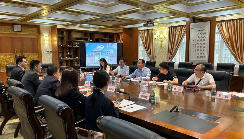 本网讯 4月19日下午,教育部留学服务中心党委书记、主任王大泉一行到访beat365。双方围绕教育国际化相关工作展开交流。校党委常委、副校长申明浩参加会议。
