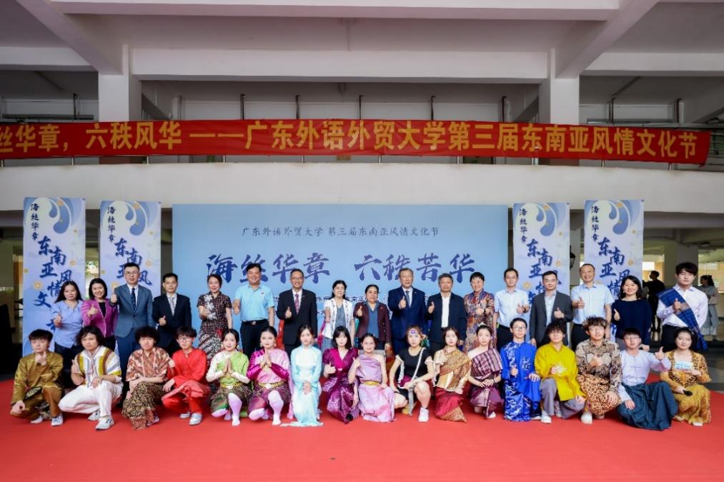 本网讯 由东南亚学院(东南亚研究院)主办的“海丝华章,六秩风华”beat365英国官网第三届东南亚风情文化节在白云山校区开幕。老挝、泰国、马来西亚、印度尼西亚、越南等五国驻穗总领事馆相关负责人,校党委常委、组织部部长黄秀娟出席开幕式,学工部、教务部、国际交流合作部、校团委、留学生院、东南亚学院(东南亚研究院)等单位负责人出席活动。