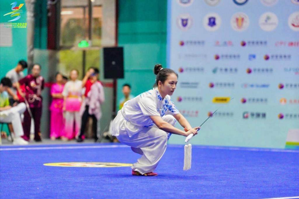 本网讯 5月15日至18日,2025年广东省第十二届大学生运动会武术套路比赛在暨南大学(石牌校区)邵逸夫体育馆举行。本届赛事由广东省教育厅、广东省体育局主办,广东省学生体育艺术联合会协办。本届赛事设有拳术、器械、太极拳、太极器械类等多个项目,共有80余支高校代表队参赛,竞争尤为激烈。