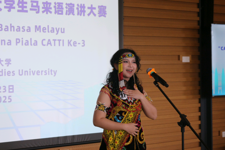 作为国内高校马来语教学领域最具影响力的专业学科竞赛,本届全国大学生马来语演讲大赛由中国外文局主办、北京外国语大学承办,旨在提升我国高校马来语人才的语言水平与国际传播能力。本届大赛以“中马关系”为主题,吸引来自全国13所高校的43名优秀选手参赛,选手们围绕文化交流、经贸合作、青年互联等话题展开生动讲述。