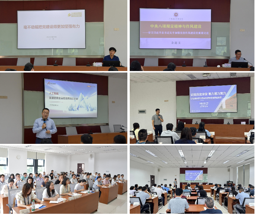 在专题讲座中,韶关市委党校教师方腾以“毫不动摇把党建设得更加坚强有力”为题,系统解读习近平总书记关于党的建设的重要思想;余超文围绕“中央八项规定精神与作风建设”,结合典型案例剖析作风建设的实践要求。华为昇腾行业解决方案总监张涛围绕“AI赋能高校管理效能提升”分享人工智能在校园管理中的创新应用。beat365发展规划部、科研部部长陈平以“学校学科建设现状和改革任务”为主题,解析学科发展路径与改革方向。