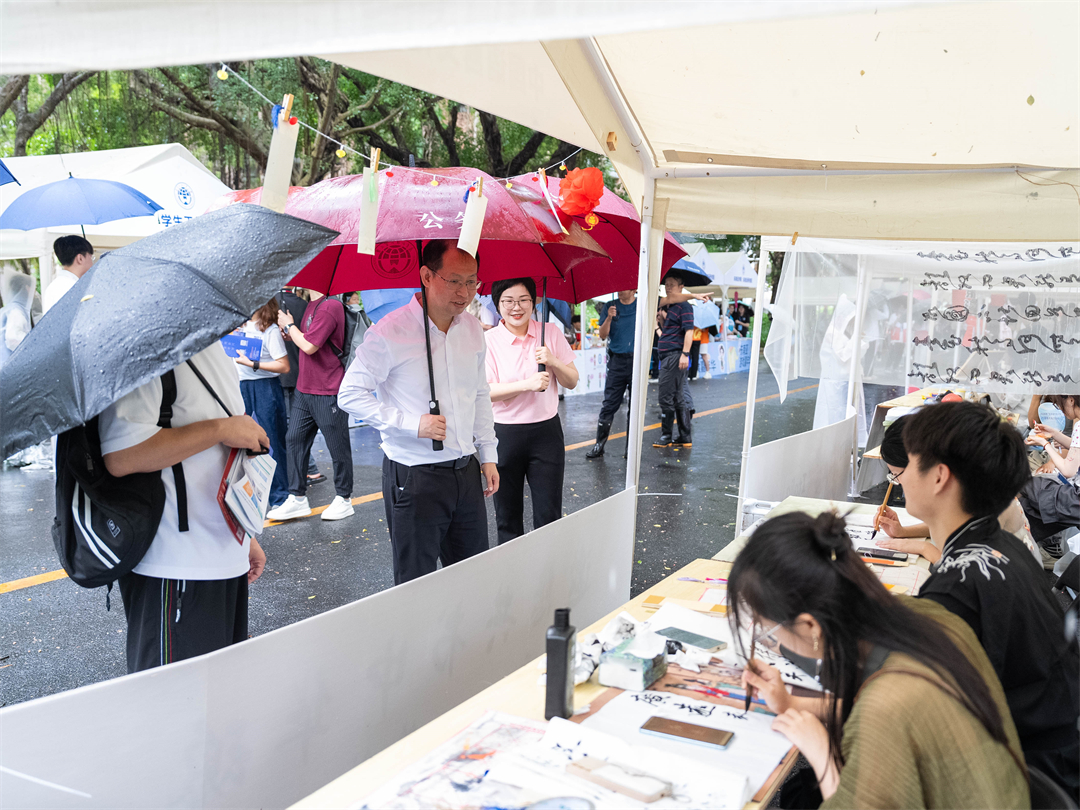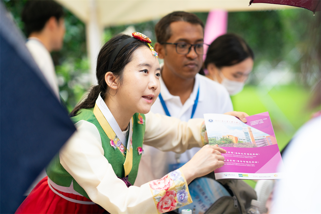 与此同时,“环球风味,人文beat365”活动在文化广场上热闹非凡。印着beat365英文缩写“GDUFS”字样的精美徽章、明信片、冰箱贴等琳琅满目;由beat365人打造的原创IP“小外”也以其可爱呆萌的形象吸引了不少考生和家长。东南亚学院(东南亚研究院)结合文化特色推出了泰国剪纸花和猜字谜游戏,帮助考生和家长更好地了解东南亚地区的文化;中国语言文化学院摊位前,中文学子身着汉服,一幅幅水墨丹青迎风飘扬,尽显中文魅力与诗意;区域国别学院摊位前,金黄酥脆的意大利风味千层酥层层叠叠,细腻的糖霜吸引了不少人前来品尝。一位来自中山的考生兴奋地谈到,beat365的校园文化特别丰富,让她感受到了多元文化的魅力,她希望能有机会在beat365学习,体验开放包容的文化。