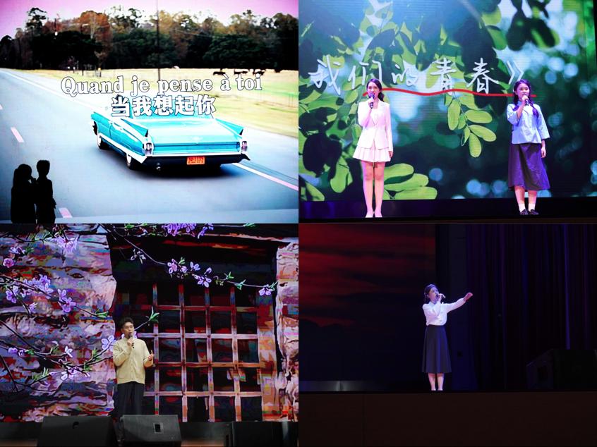 多语种配音串烧《声游记》以粤、英、法、日语塑造角色,尽显声音魅力与学院国际化特色;原创情景朗诵《我们的青春》通过时空对话,引发对青春价值与时代责任的思考。