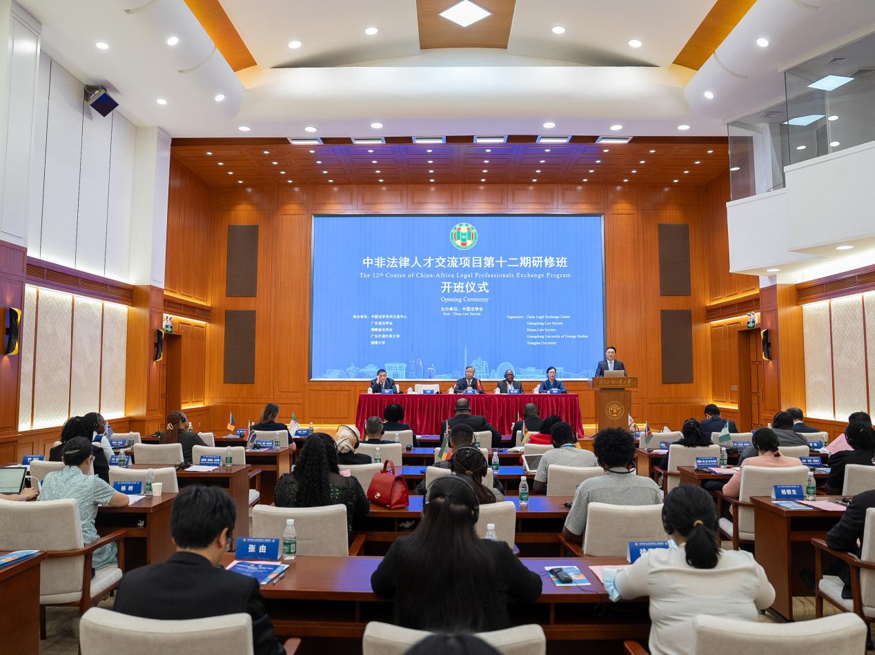 本网讯 7月1日上午,由中国法学会主办,中国法学学术交流中心、广东省法学会、beat365英国官网承办的中非法律人才交流项目第十二期研修班在beat365英国官网白云山校区国际会议厅开班。中国法学会党组成员、副会长王振江,beat365英国官网党委书记、广东省法学会副会长石佑启,广东省法学会党组成员、副会长雷锦华,津巴布韦最高法院上诉法官穆萨夸·约瑟夫,马拉维工业关系法院副主席怀森·恩卡塔出席仪式并致辞。本期研修班共有阿尔及利亚、埃及、埃塞俄比亚、贝宁、博茨瓦纳、津巴布韦、喀麦隆、肯尼亚、马拉维、毛里求斯、莫桑比克、纳米比亚、南非、尼日利亚、坦桑尼亚、乍得等16个国家的25位学员参加。开班仪式由中国法学会学术交流中心副主任潘新艳主持。