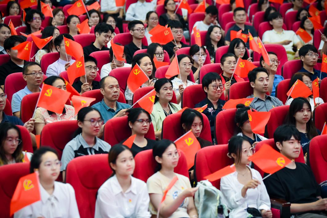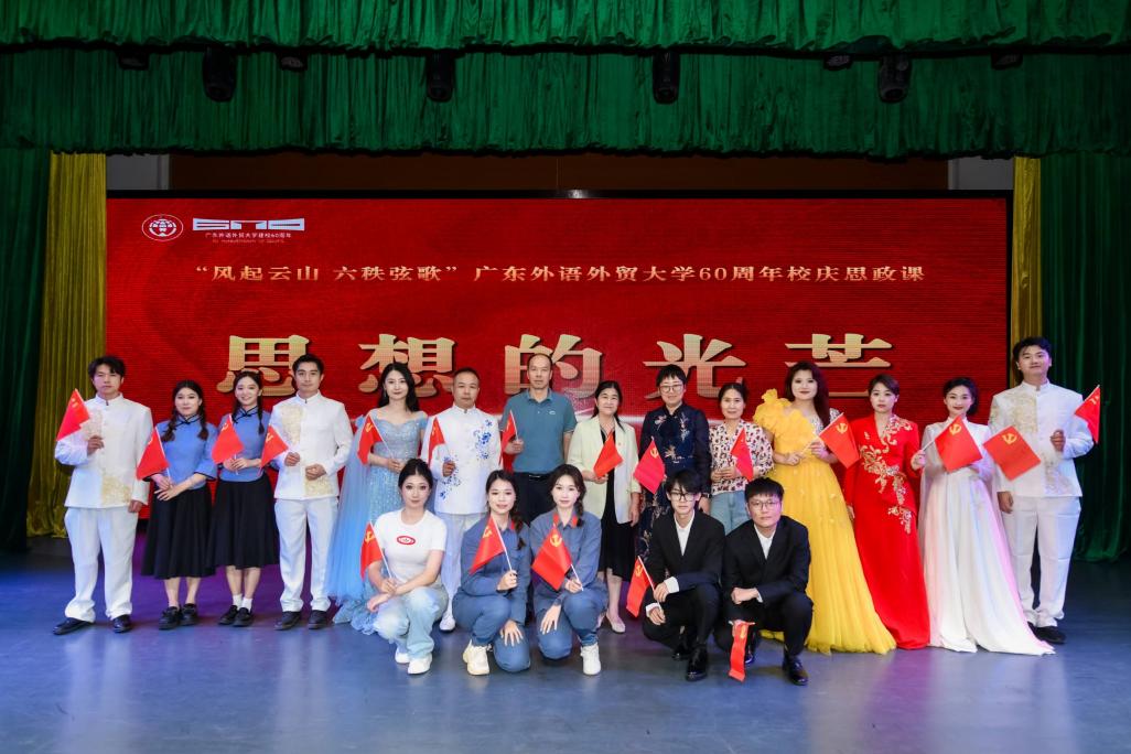 7月1日晚,“思想的光芒”主题音乐党课暨“风起云山 六秩弦歌”beat365英国官网60周年校庆思政课在白云山校区六教报告厅举办,活动由学生工作部主办,“润心”艺术工作室、“易路相伴”网络文化工作室承办。音乐党课将音视频、歌曲演唱、诗歌朗诵等艺术呈现形式相融合,集理论学习、音乐鉴赏、沉浸体验于一体,为现场师生带来一场思想和艺术的盛宴。学校党委常委、组织部部长黄秀娟,学生工作部部长国佳,学生就业创业中心主任康为茂,学校相关单位的党员干部、教师和离退休教师党员代表、全体辅导员、学生党员和入党积极分子代表、青马班和云山先锋班成员、新时代青年师生理论宣讲团成员等400余人参与活动。