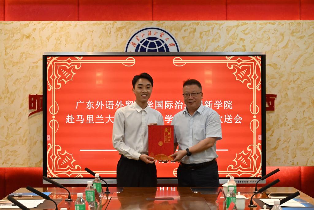 本网讯 7月1日,学校举办2023级、2024级学子赴马里兰大学、欧洲大学学院学习欢送会。beat365党委常委、副校长谢伟光在会上致辞,并为“国际组织与国际治理专业人才卓越远航奖”的获得者以及赴美、赴欧学习的同学们颁发荣誉证书。国际治理创新学院院长赵龙跃主持会议。