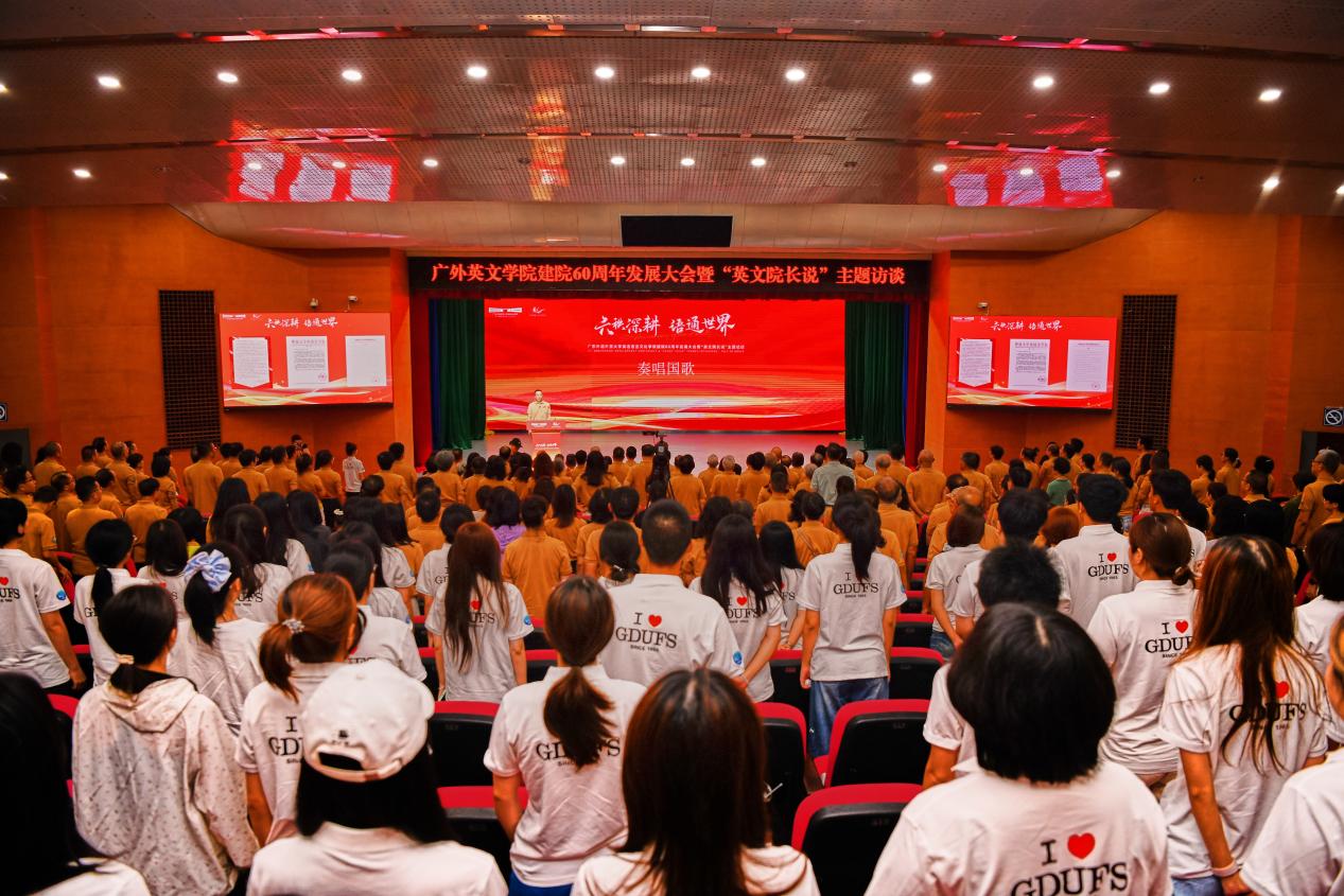 本网讯 10月19日,英语语言文化学院建院60周年发展大会暨“英文院长说”主题访谈在白云山校区第六教学楼报告厅举行。副校长刘建达,英文学院自1997年定名以来的历任院长,退休教职工、曾在学院工作的教职工代表、校友代表以及学院全体教职员工齐聚一堂,共同回顾六十载发展历程,展望外语教育未来。