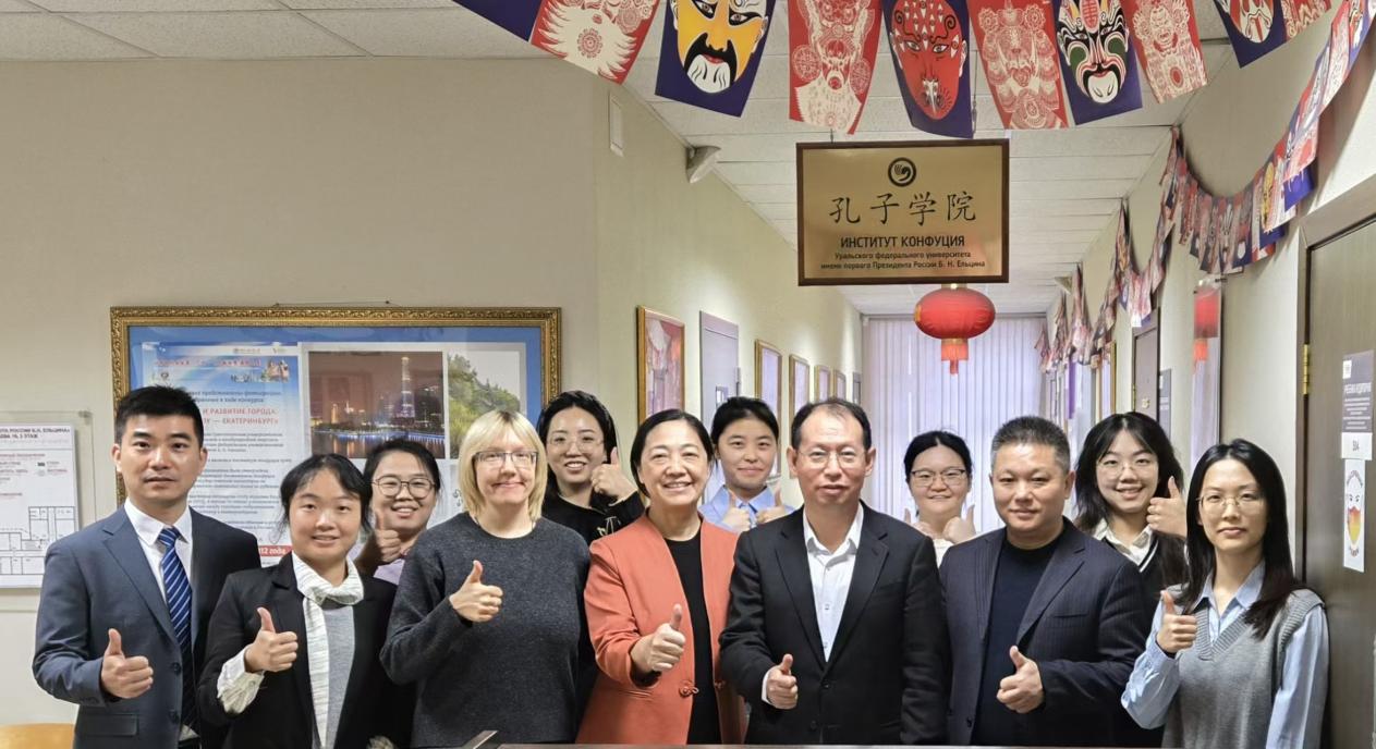 代表团赴叶卡捷琳堡访问乌拉尔联邦大学及乌联大孔院。该校分管国际交流事务的图申·谢尔盖·根纳季耶维奇副校长一行与beat365代表进行座谈。图申表示,中俄人文交往和经贸关系密切,两校合作关系紧密,特别在孔院合作共建和学生互派方面已有长期合作基础;希望加强师生互访和学术交流,拓展师生合作范畴,提高交换生数量。申明浩回应,自2011年两校合作共建孔子学院以来,乌联大孔院已成为乌拉尔地区中文教育的重要平台。在继续合作共建孔院的基础上,未来两校有许多合作和发展的空间,可以在学科建设包括人文艺术、经贸、管理和法律等专业建设,以及共同进行期刊投稿和开展科研方面深化合作。双方对进一步完善孔院建设、加强基础设施建设,以及进一步拓宽校际交流渠道、建立师生交流常态化机制等方面达成多项共识。