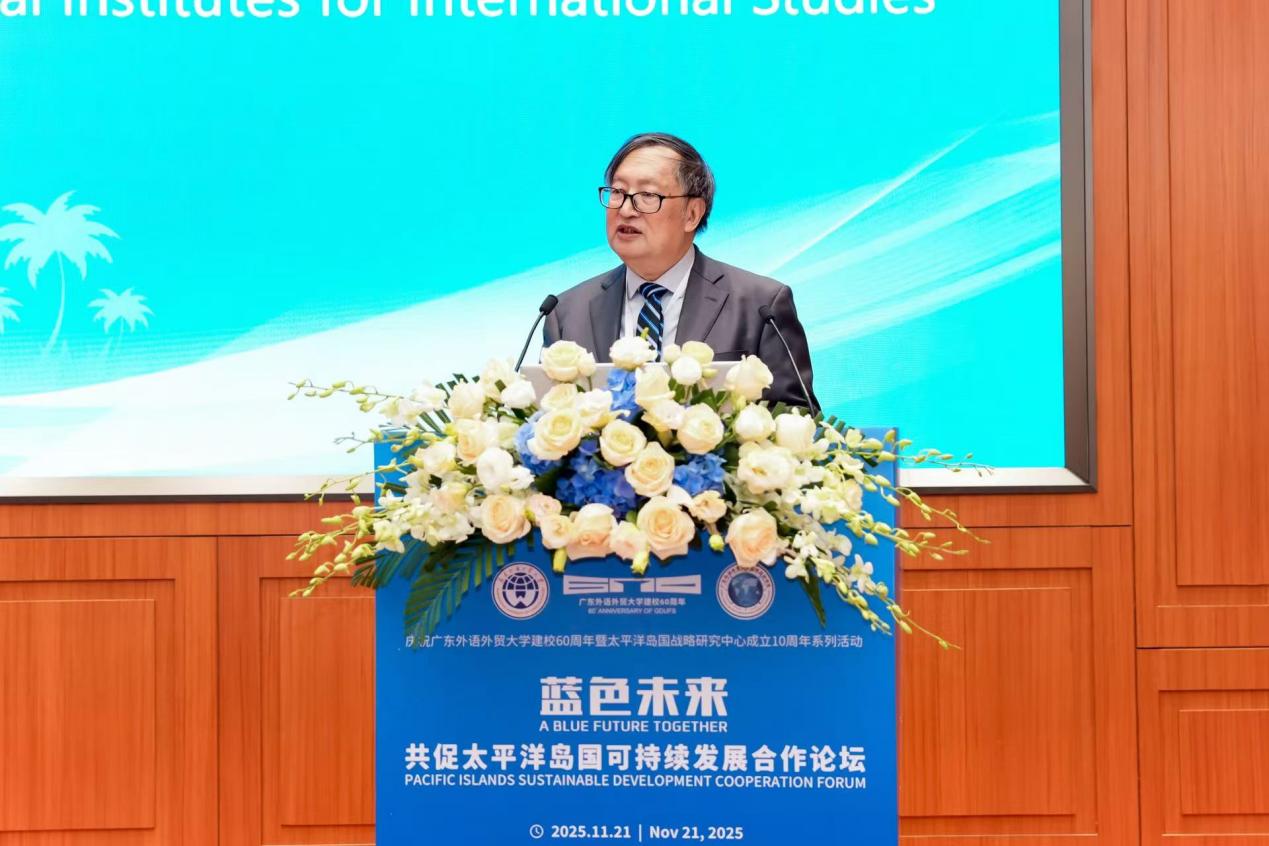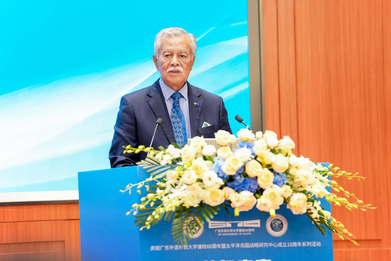 论坛汇聚了来自中外政、学、研各界的重量级嘉宾,围绕中国与太平洋岛国可持续发展合作等议题深入交流,共同描绘“蓝色未来”的合作愿景。与会代表包括库克群岛党(CIP)主席、库克群岛前总理、太平洋岛国论坛前秘书长亨利·普纳,所罗门群岛驻华大使巴雷特·萨拉托,斐济共和国驻华大使李振凡,巴布亚新几内亚驻华大使萨迪厄斯·卡姆巴内,密克罗尼西亚联邦驻华公使弗朗西斯·阿内法尔,瓦努阿图驻广州总领事吴值佳,太平洋岛国贸易与投资专员署贸易专员莫纳·马托,瓦努阿图大学校长让·皮埃尔·尼鲁阿,汤加国立大学副校长朱利奥·庞达,萨摩亚国立大学副校长德斯蒙德·李航,中央广播电视总台CGTN英语环球节目中心策划部副主任沈小蒙以及来自太平洋岛国和国内多所知名高校、智库、科研机构的100余名学者参会。