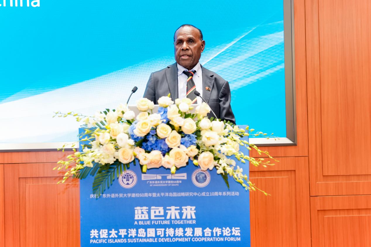 巴布亚新几内亚驻华大使萨迪厄斯·卡姆巴内以“太平洋岛国可持续发展的挑战与路径”为题,强调太平洋可持续发展关乎全球,海平面上升等挑战不仅正在威胁岛民生计,也是全球发展的当务之急。因此,大使表示,太平洋岛国深切感谢中国支持,中国搭建的平台与“一带一路”倡议助力中国—太平洋岛国交流与合作。中国太平洋岛国合作已覆盖基建、医疗、教育等领域,大批巴新学生赴华深造。最后,大使呼吁深化人力与教育合作,将论坛共识转化为行动,携手保护海洋生态,共推可持续发展。