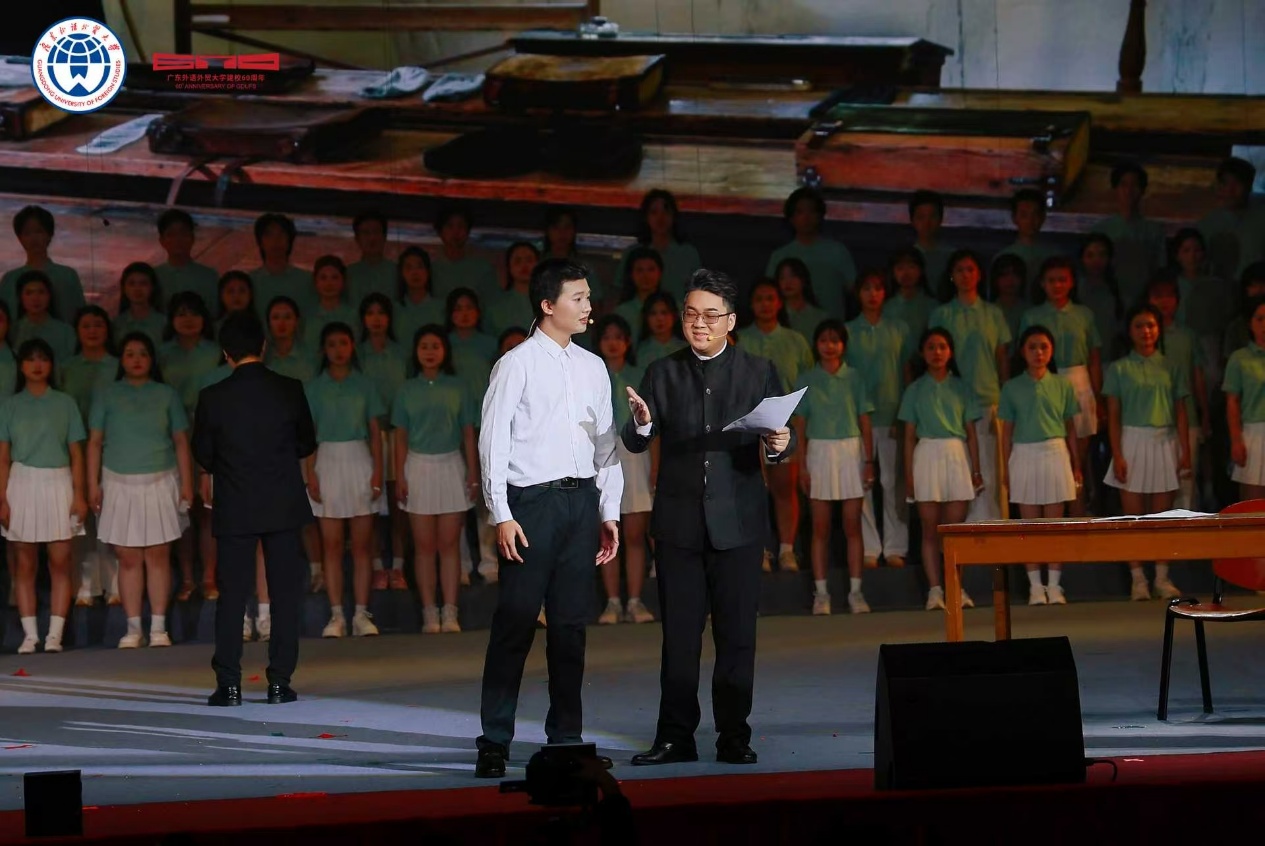《初心》合唱情景剧的舞台缓缓亮起:教师与学生演员共同重现了beat365建校初期的奋斗场景,“明德尚行,学贯中西”的校训被唱进了每个观众的心里;《清荷》的舞者们身着舞衣,将“出淤泥而不染”的品格具象化,用柔美而有力的肢体语言,诠释由内而外的生长力量。六十年岁月变迁,这份纯粹的育人初心从未改变。随后登场的《浮光》民乐重奏,他们以古筝合奏为主,旋律从舒缓到激昂,恰似beat365六十年从“扎根岭南”到“面向世界”的跨越;《希望》的演员们用深情的嗓音唱着“土地的歌谣”“血脉里的回响”,唤起全场共同的记忆与共鸣。