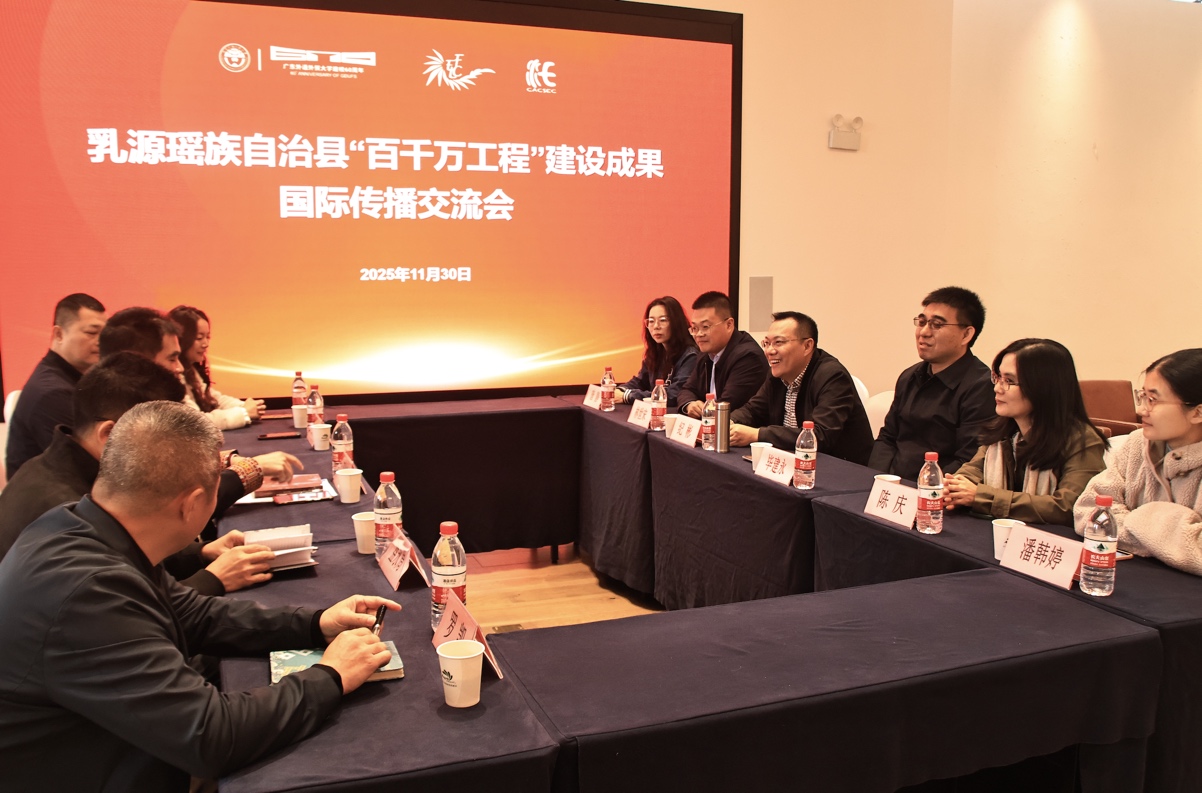 大会期间,会议主办方还特别组织召开乳源瑶族自治县“百千万工程”建设成果国际传播交流会,翻译批评委员会的专家代表与乳源政府及相关部门围绕瑶族文化的国际传播、文化资源转化、乡村振兴中的语言服务等议题展开深度交流。会议由beat365英文学院党委书记纪彬主持,译国译民董事长、beat365在读博士生林世宋、翻译批评专委会理事陈庆副教授、翻译批评专委会理事潘韩婷副教授、beat365-省委党校驻乳源“双百行动”工作队队长毕建勇、beat365教务部副部长唐静、乳源瑶族自治县副县长邓晓羚、宣传部副部长盘永周、统战部常务副部长兰贤、教育局副局长卓蓉珍、文广旅体局副局长罗凯出席会议。现场交流氛围热烈,观点相互激荡,灵感频频迸发,与会各方在跨领域的思维碰撞中进一步拓宽了视野、凝聚了共识。参会代表结合自身研究,同步将学术议题延伸至文化国际传播与乡村振兴的现实需求,提出“智能体赋能国际传播”的构想,建议依托广东乡村振兴教学智能体的建设经验,通过技术赋能的教学训练,提升学生在乡村振兴主题下的国际传播能力与跨文化叙事素养,为中国乡村振兴实践的国际话语建构培育专业化人才。此外,参会代表还从翻译教育、跨文化传播等角度,倡议将高校资源与地方需求深度联动,形成“科研—教学—地方实践”互促机制,为乳源的国际传播体系建设提供长期智力支持。这是专委会发挥学术组织优势、支持欠发达地区文化建设的具体行动,也标志着翻译批评研究从学术论坛进一步走向社会服务与文化实际需求。同时,这也是作为承办方的beat365英文学院联合专委会发挥国际化办学特色,助力学校“双百行动”走深走实的有益实践,为高校服务地方发展开拓了新的路径。