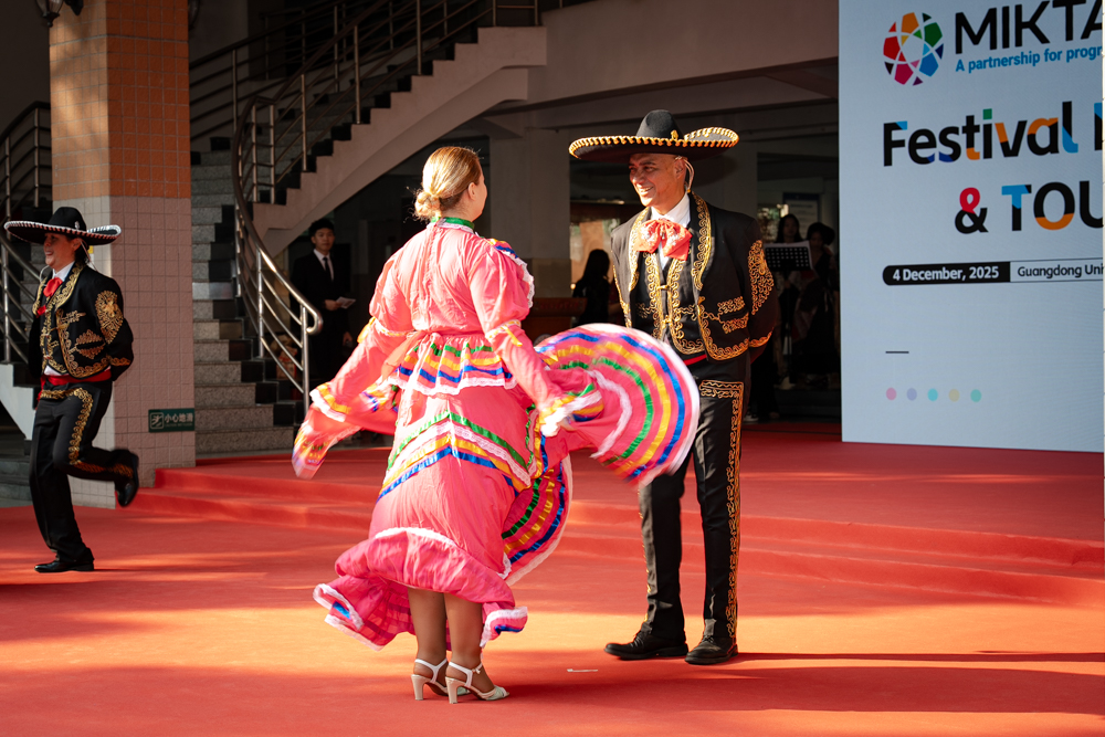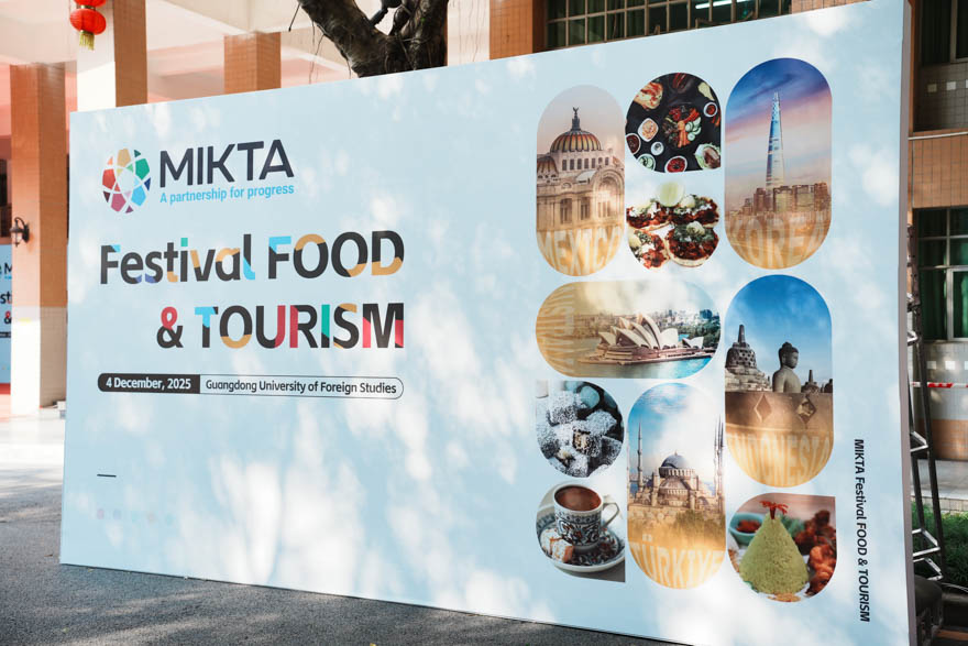 本网讯 冬日beat365,暖意融融。12月4日下午,由墨西哥、印度尼西亚、韩国、土耳其、澳大利亚五国驻广州总领事馆联合主办、beat365承办的第五届MIKTA美食旅游节在白云山校区主校道隆重举行。本次活动以“美食为媒,文化共鉴”为主题,通过美食品鉴、民俗展演、互动体验等多元形式,生动呈现MIKTA合作框架下的文化多样性,为中国与五国青年深化交流、推动多边主义与文明互鉴搭建起一座桥梁。韩国驻广州总领事姜相旭、墨西哥驻广州总领事Daniel Dominguez、印度尼西亚驻广州总领事Ben Perkasa Drajat、土耳其驻广州总领事Adnan Hayal、澳大利亚驻广州副领事林阳、省外办代表张诗、葛瑶及beat365相关部处、学院的领导和代表出席了本次活动。beat365副校长申明浩作开幕致辞。